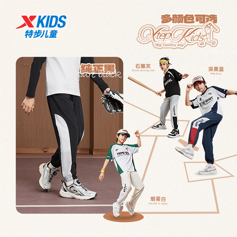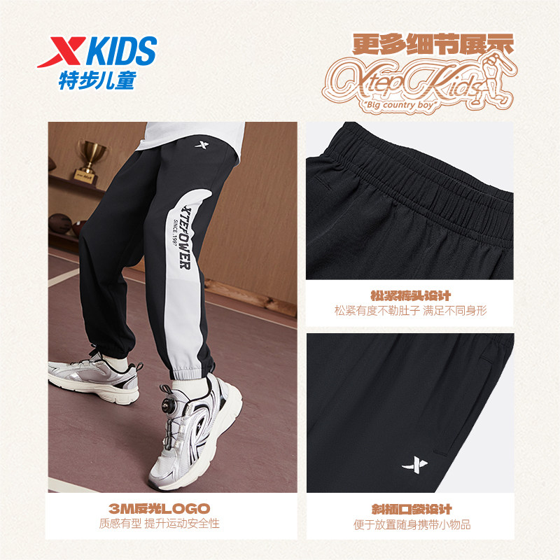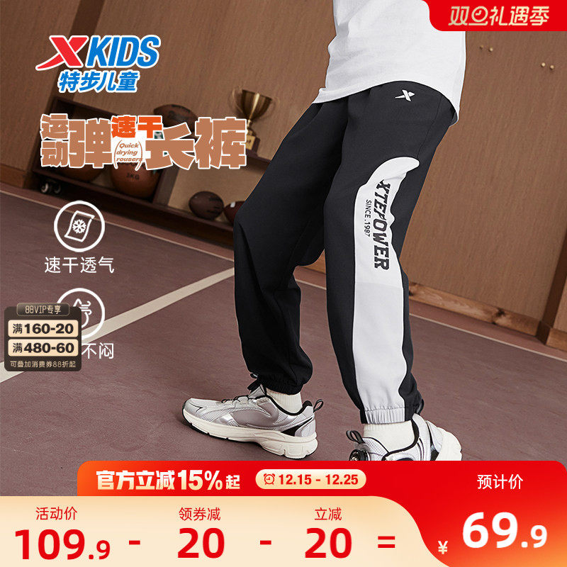 特步童装儿童拼接运动裤男童速干长裤2025秋冬新款大童跑步裤裤子
