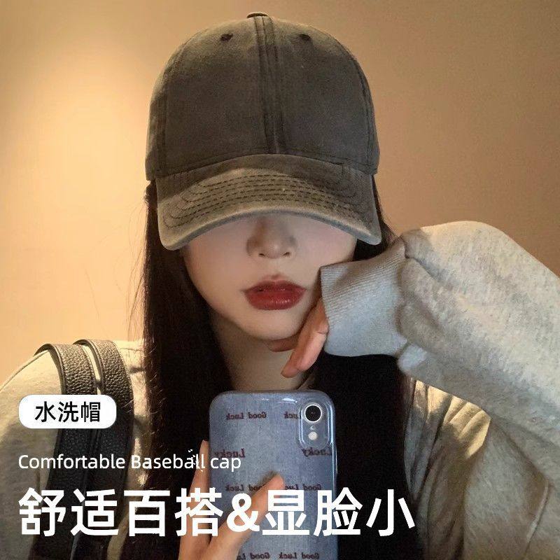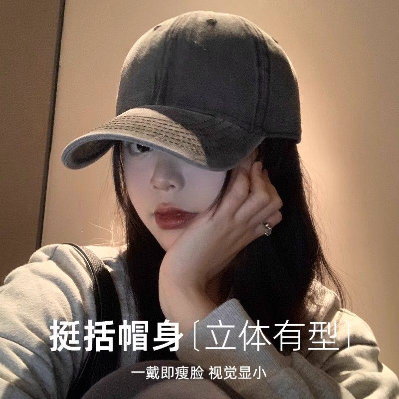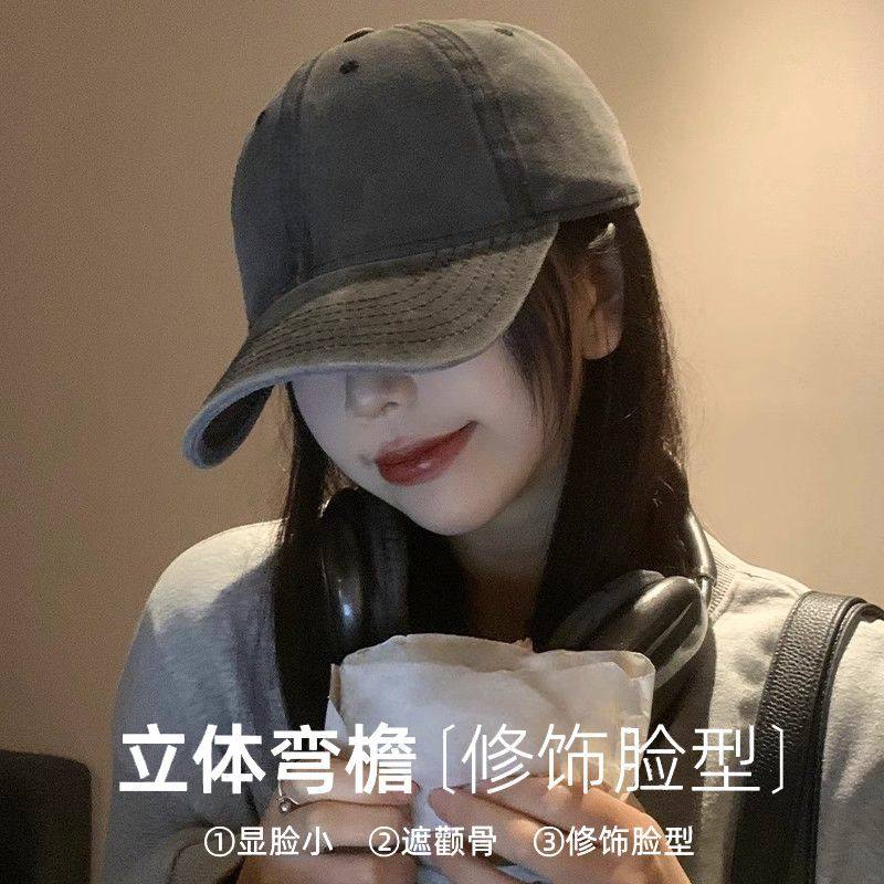 美式做旧牛仔帽子ins潮水洗棒球女复古软顶鸭舌显脸小宽帽檐加宽