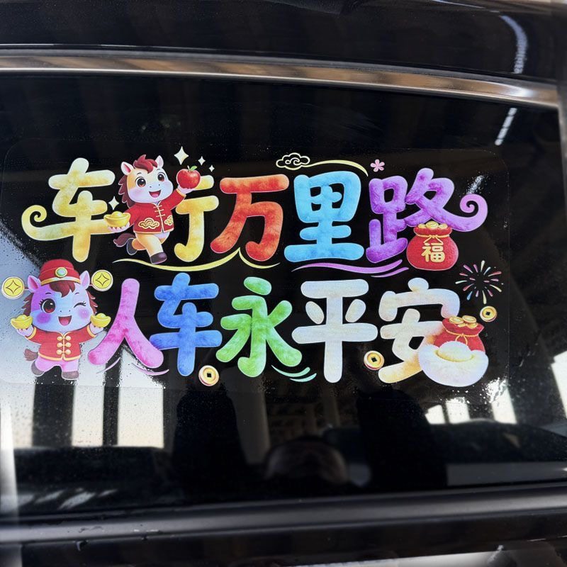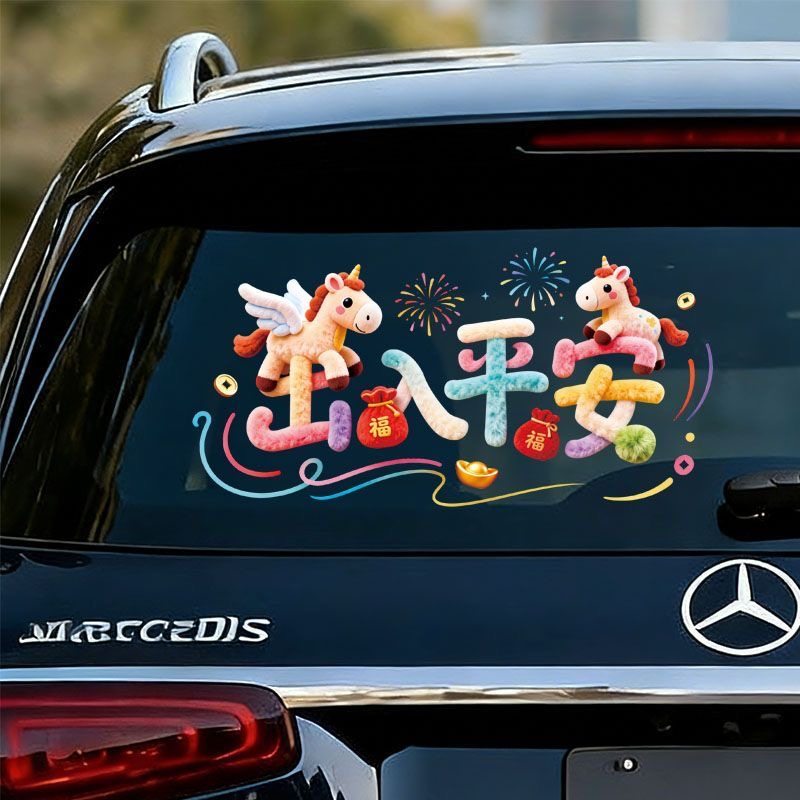 2026出入平安汽车贴纸新款马年祝福创意文字贴后档玻璃透明贴装饰