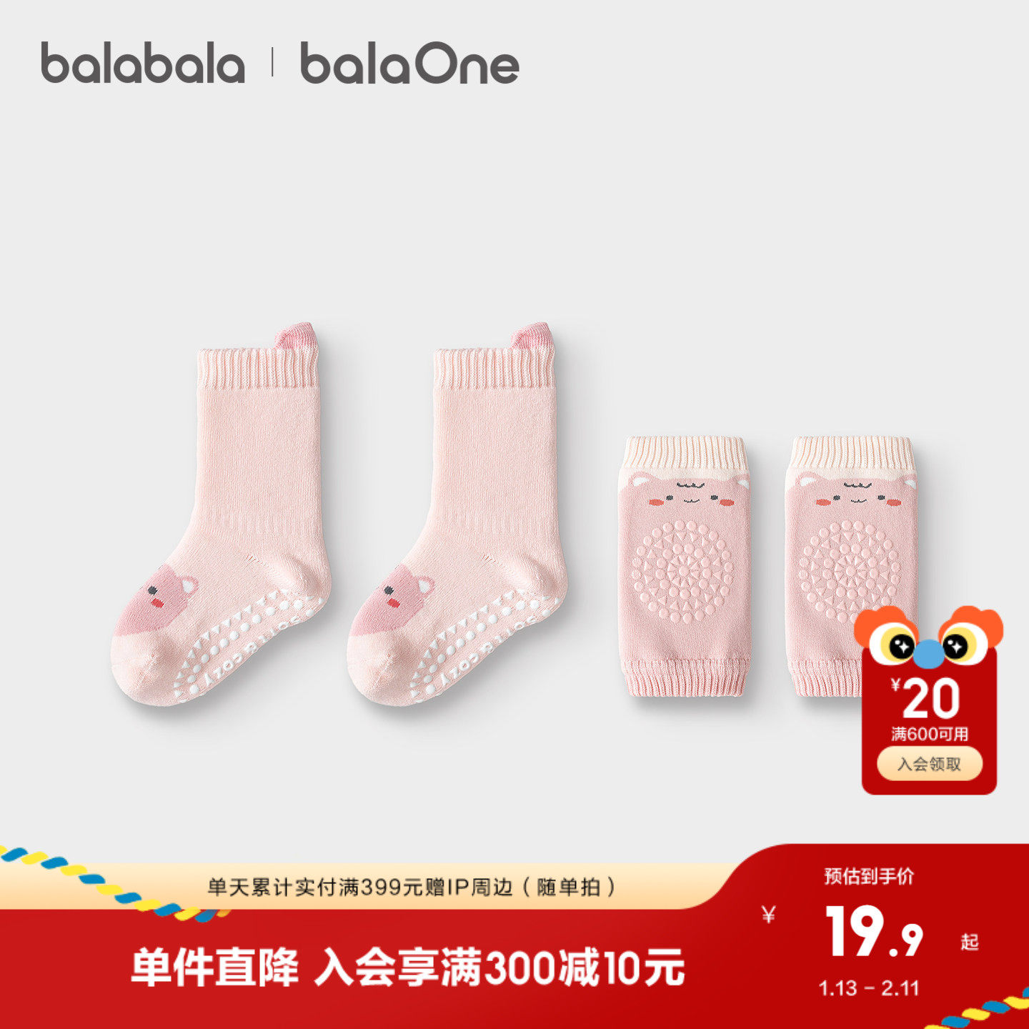 巴拉巴拉balaOne宝宝袜子冬保暖袜婴幼儿短袜防着凉提花护膝套装