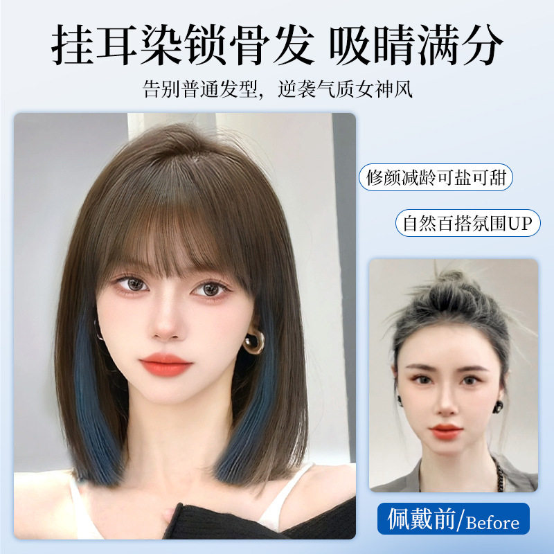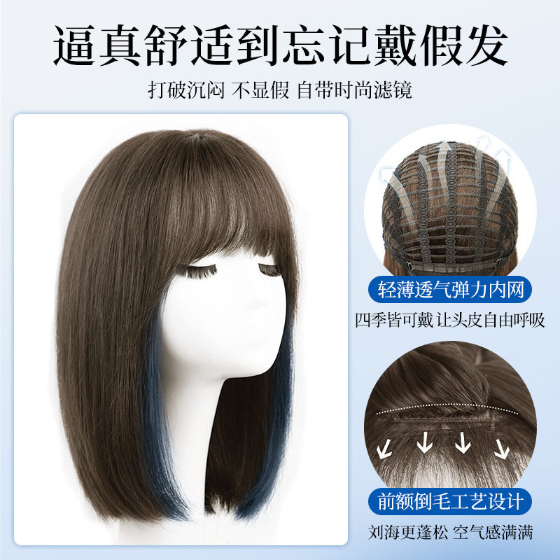 假发女短发锁骨发日常自然全头套时尚蓬松中长发整顶波波假发头套