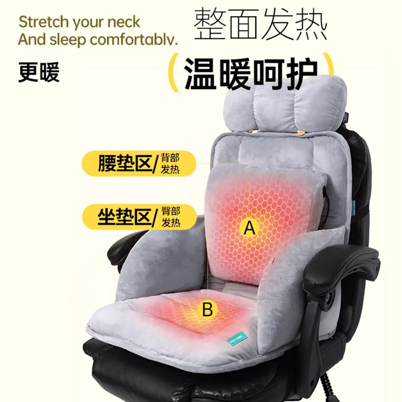 石墨烯usb加热坐垫办公室久坐神器靠背护腰靠垫一体电热座垫椅垫