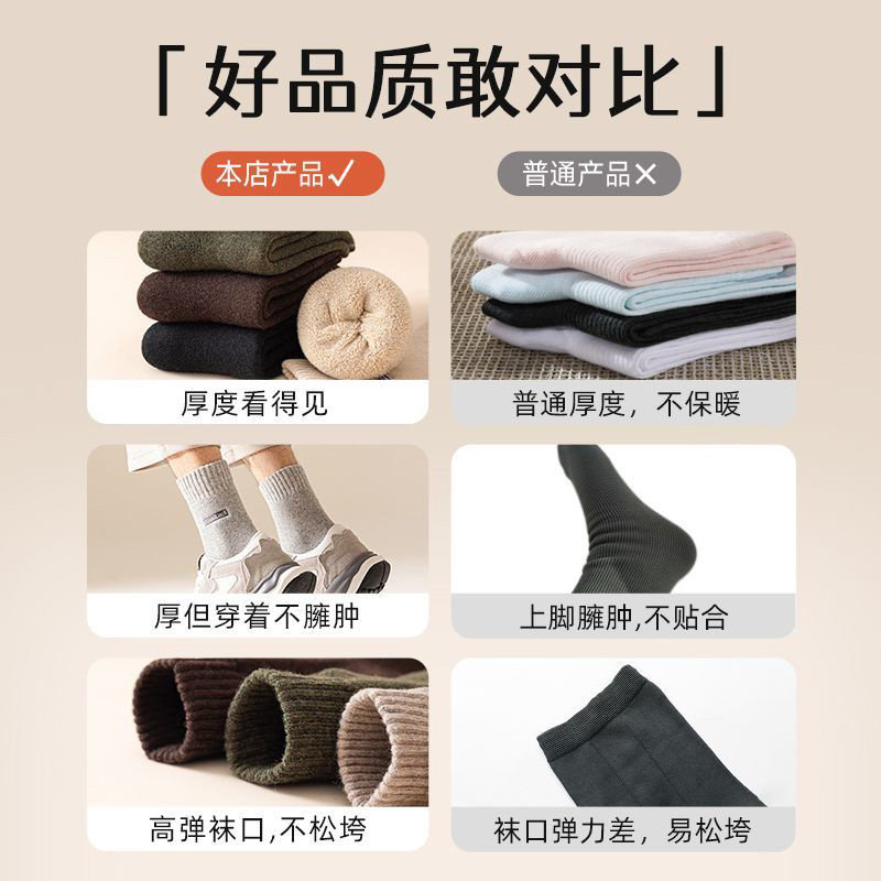 羊毛袜子毛巾袜男士中筒袜秋冬季加厚加绒发热保暖毛圈袜长筒优质