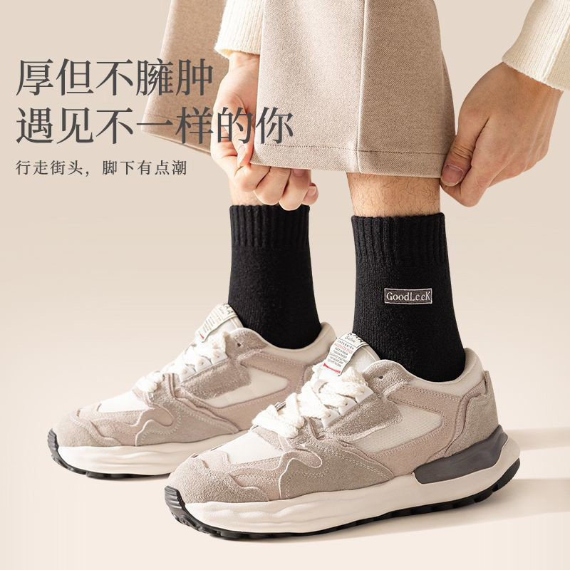 袜子男加厚加绒保暖毛圈袜中筒袜秋冬款男士袜子高筒长筒袜