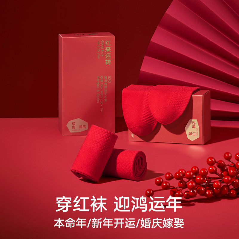 【胡可】松山棉店松山福红色袜子男女情侣结婚马年