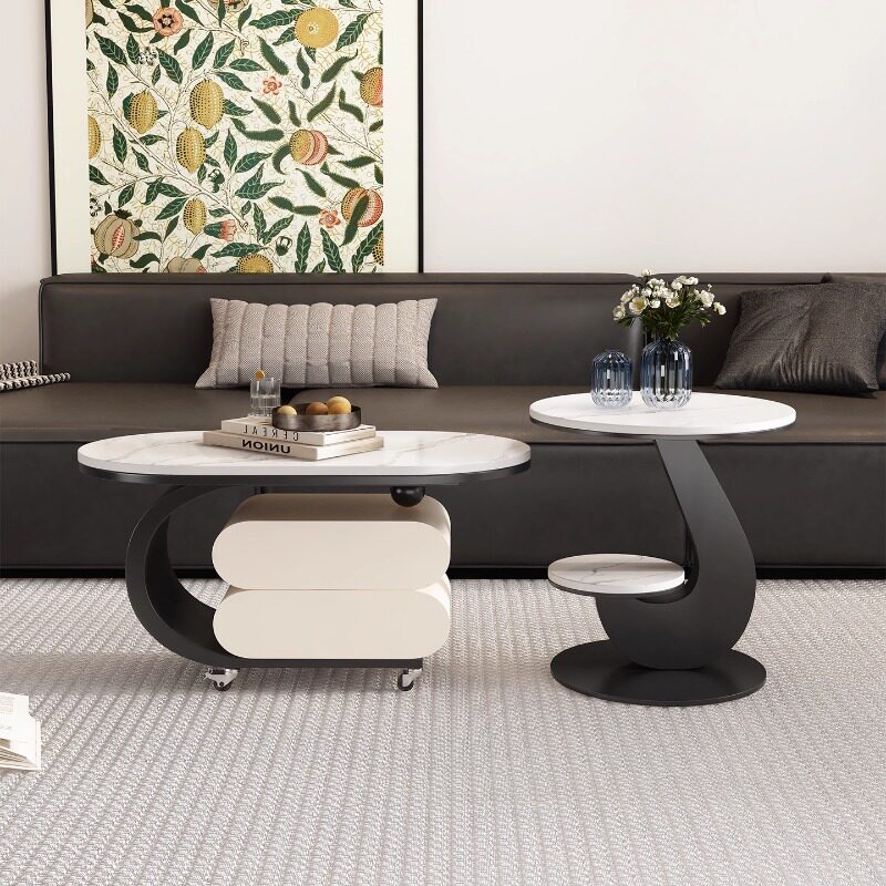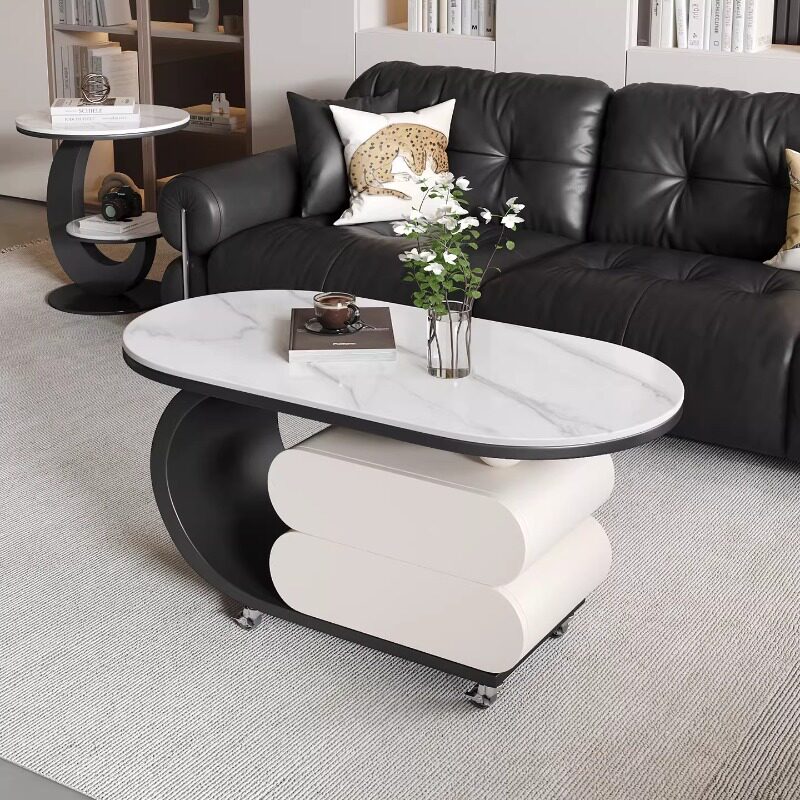 茶几带抽屉现代轻奢可移动家用岩板推车边几高级设计椭圆角几