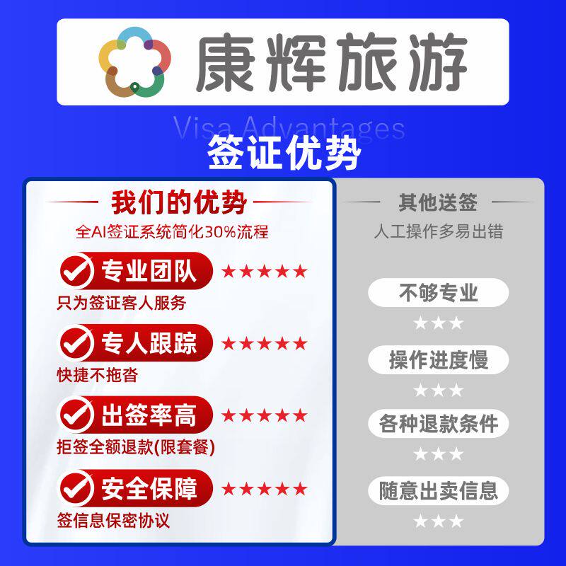 康辉——全国受理,签证顾问一对一审核。 各大签证中心与我们公司相邻,办理便捷。 当日加急 全程无忧 团购优惠 专家审核套餐。 额外赠30天内申根保险。