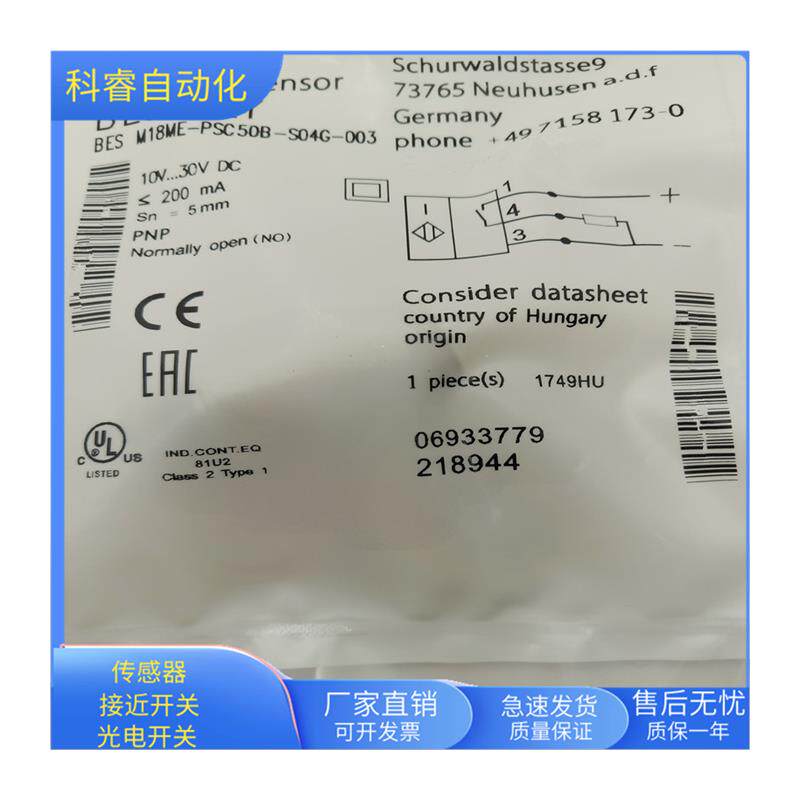 BESM12MI-PSC40B-S04G-003接插件PNP常开传感器金属感应