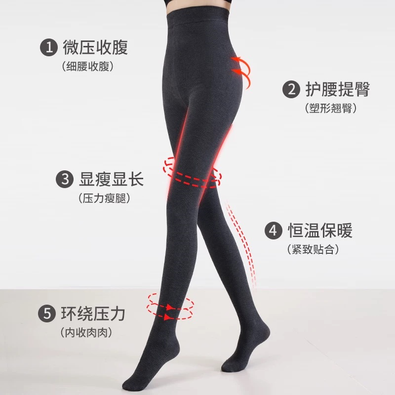 菇娘家黑色连裤袜发热保暖塑形打底裤大码女显瘦微压袜裤秋冬新款