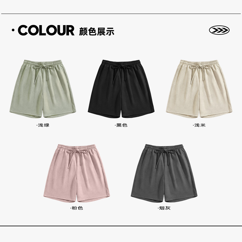 唐狮裤子男款夏季短裤复古港风大学生麂皮绒宽松运动潮牌五分裤HW