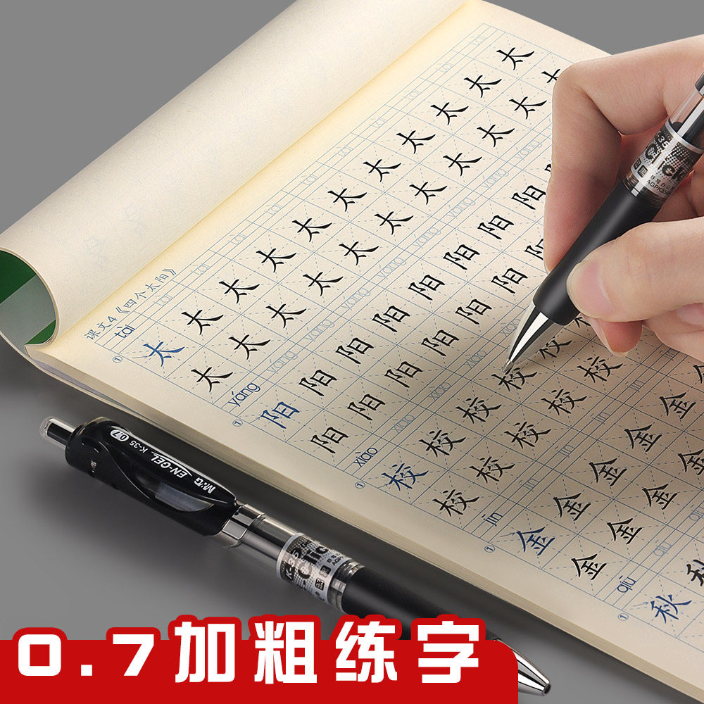 晨光0.7练字专用笔1.0签字笔粗头硬笔书法中性笔小学生练字笔成人男士商务高档签名笔按动水笔黑色大容量笔芯