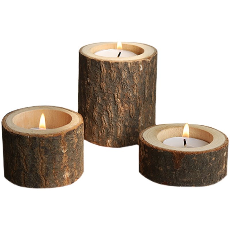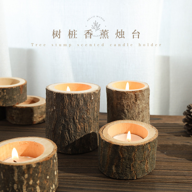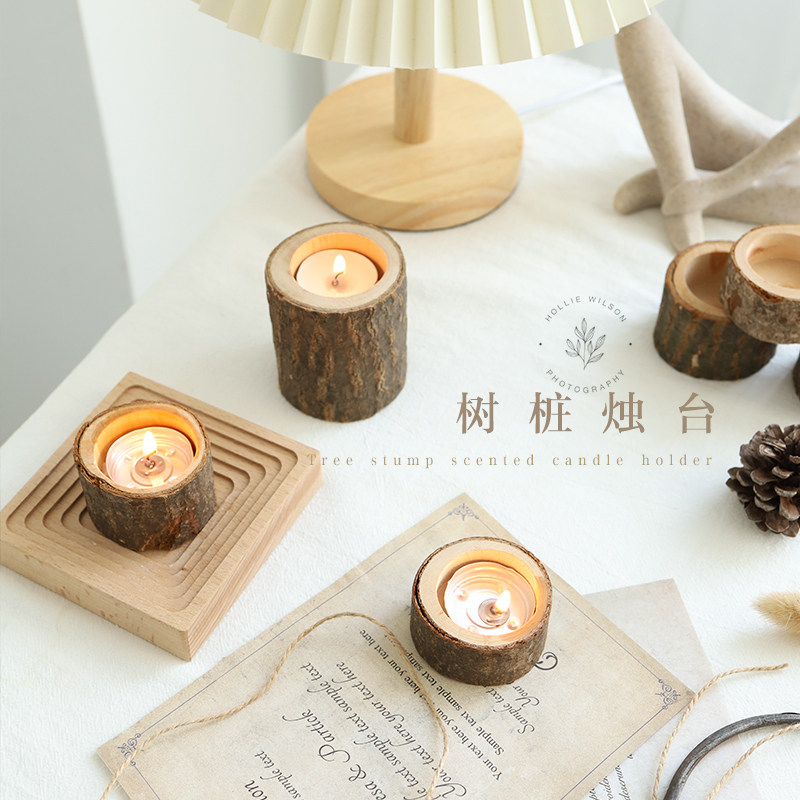 ins原宿复古怀旧树桩木烛台氛围感拍照装饰道具香薰蜡烛家居摆件
