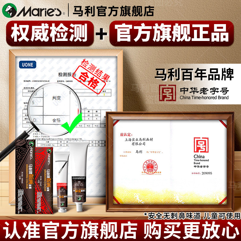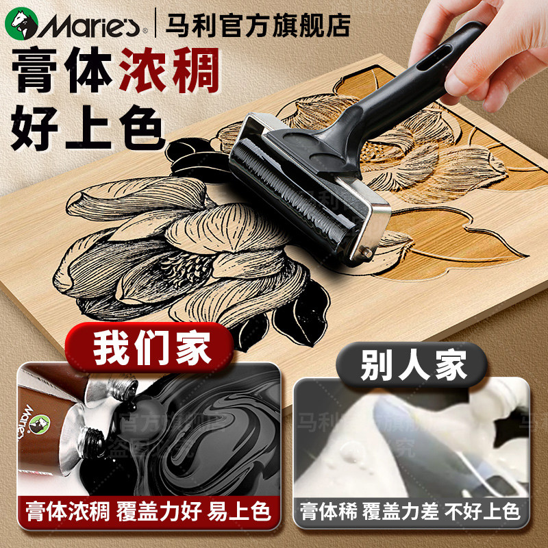 马利版画油墨颜料50ml版画专用胶板滚筒工具套装马莲木蘑菇彩色拓印油性100ml黑色红色雕刻木刻板官方旗舰店