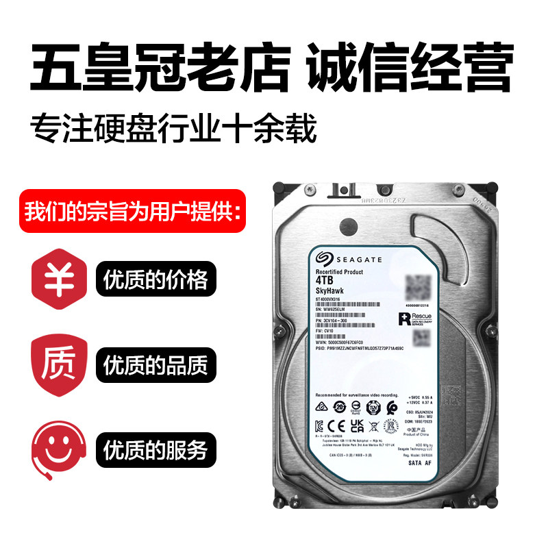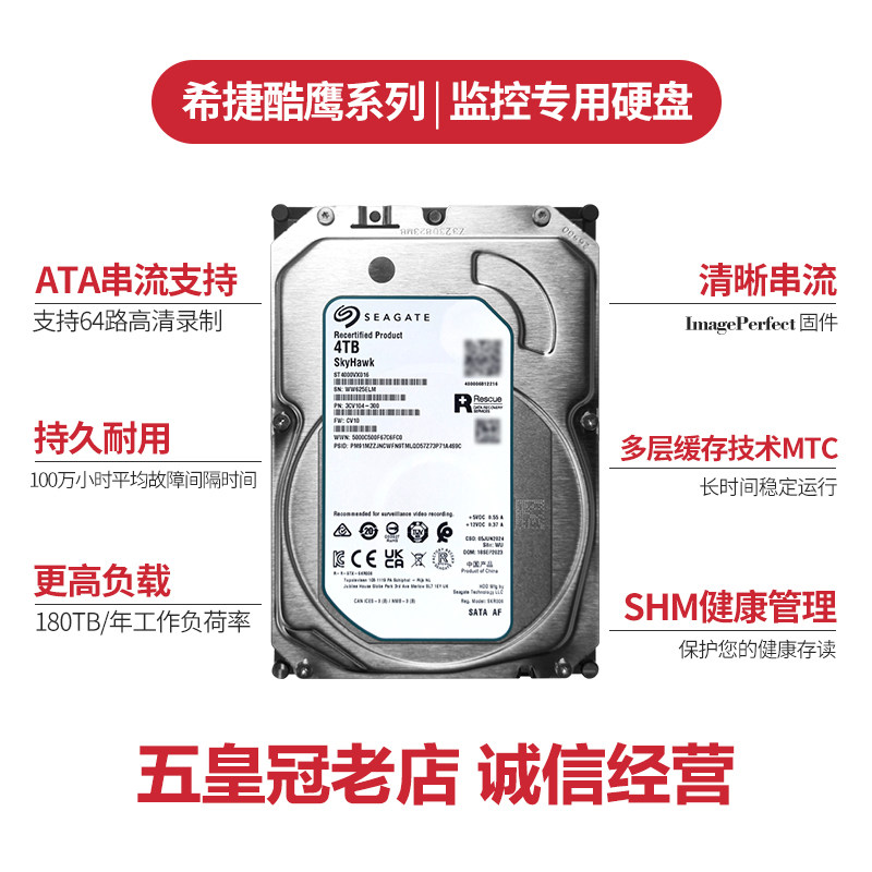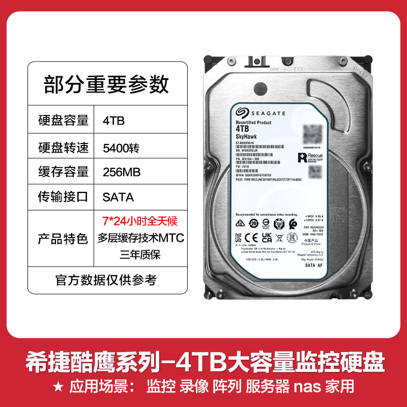 Seagate/希捷ST4000VX016 酷鹰4tb监控安防录像机CMR垂直机械硬盘