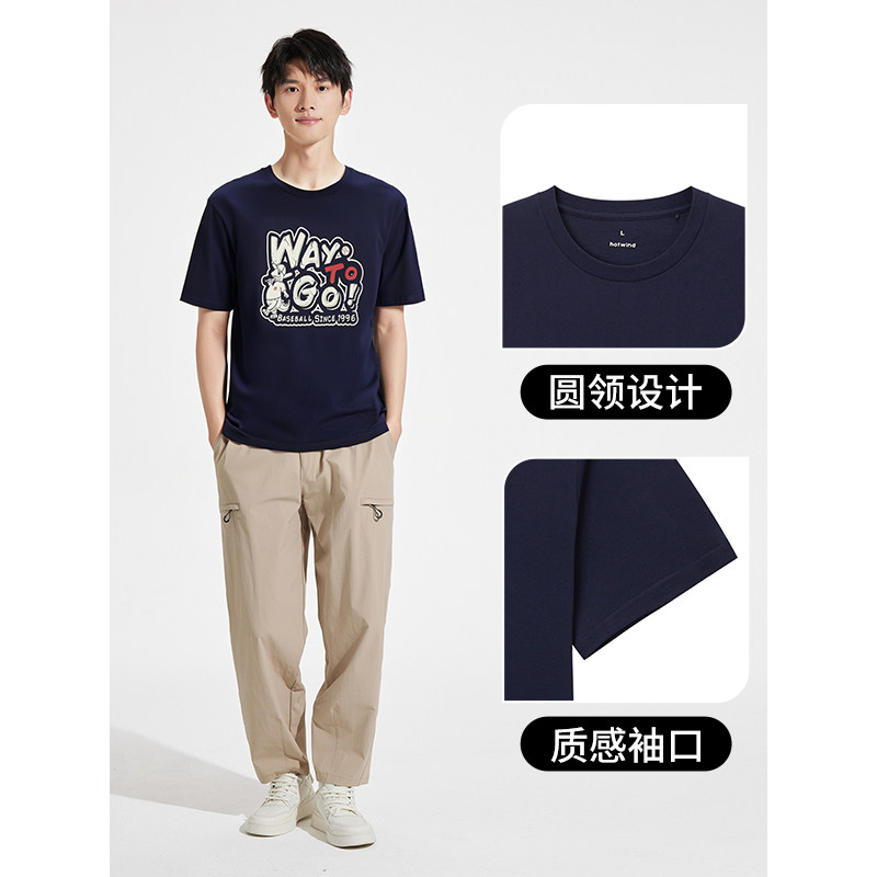 热风男士黑色短袖T恤2025年夏季新款休闲图案短袖T恤宽松情侣T恤