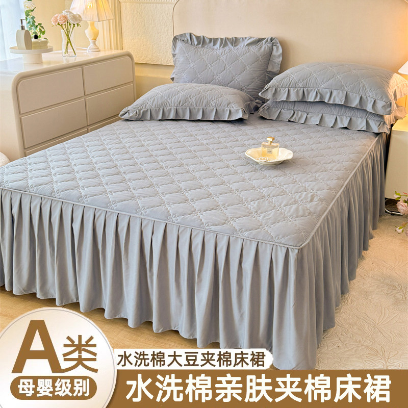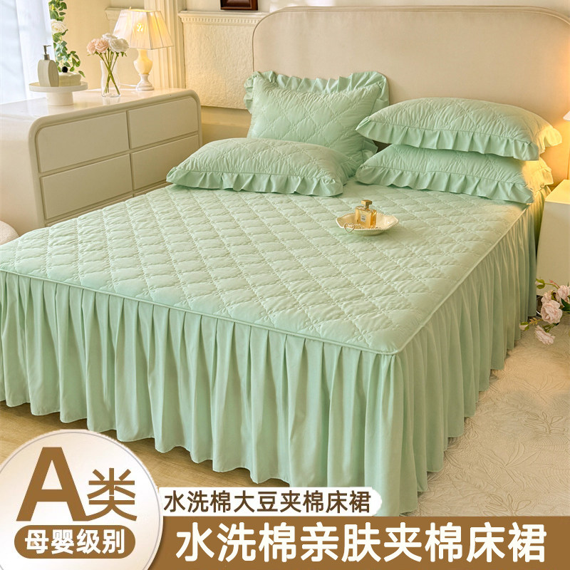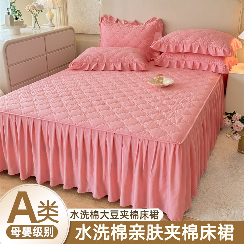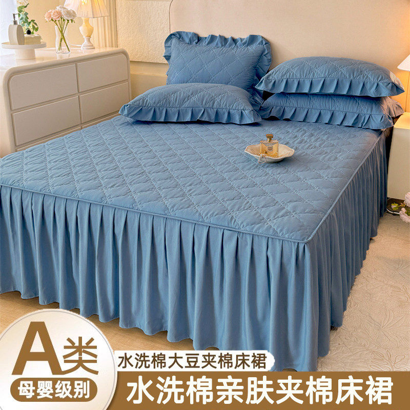 加厚全棉水洗棉夹棉床裙单件纯棉防滑床罩床套裙式床单枕套三件套