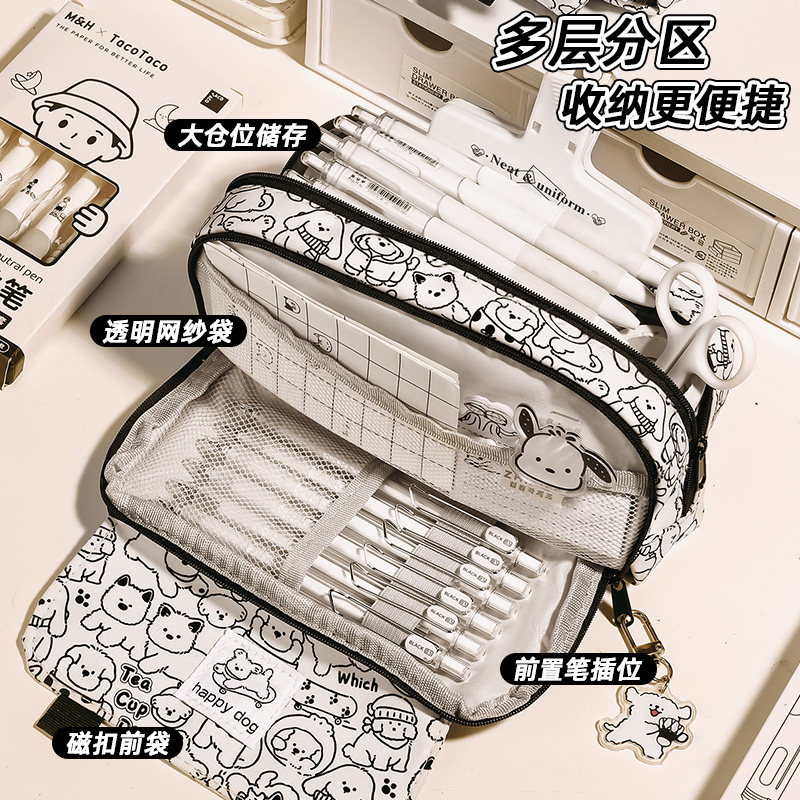 2026新款小狗笔袋大容量女生文具盒小学生女孩款高颜值ins文具袋初中男生小众不撞款铅笔盒男孩学霸日系线条