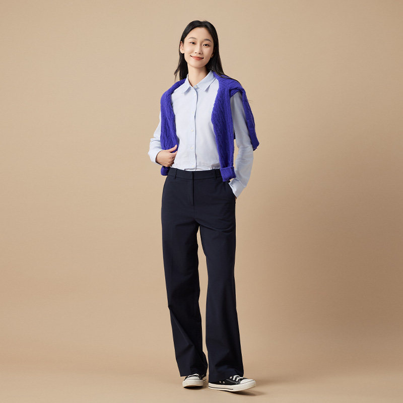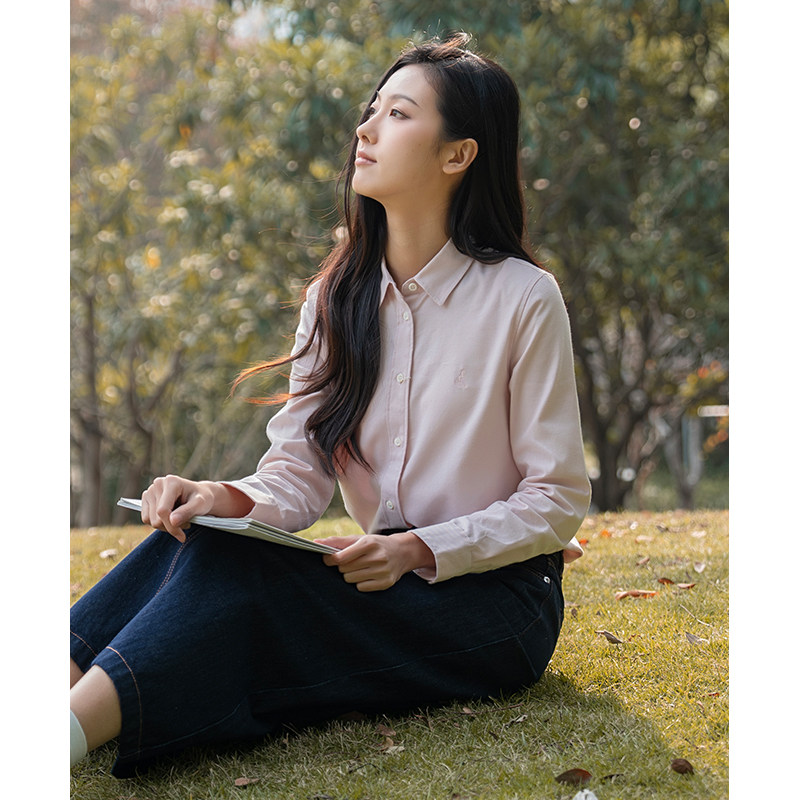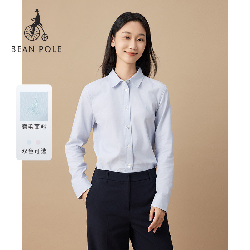 BEANPOLE滨波 女士休闲商务优雅职场高智风舒适磨毛素色长袖衬衫