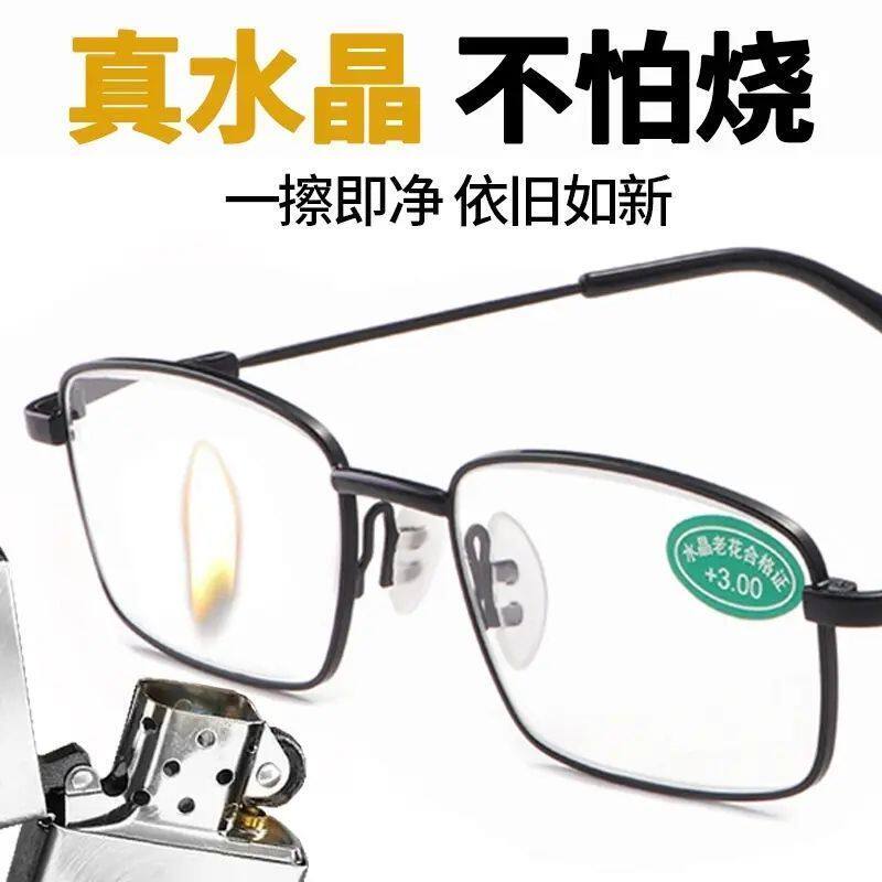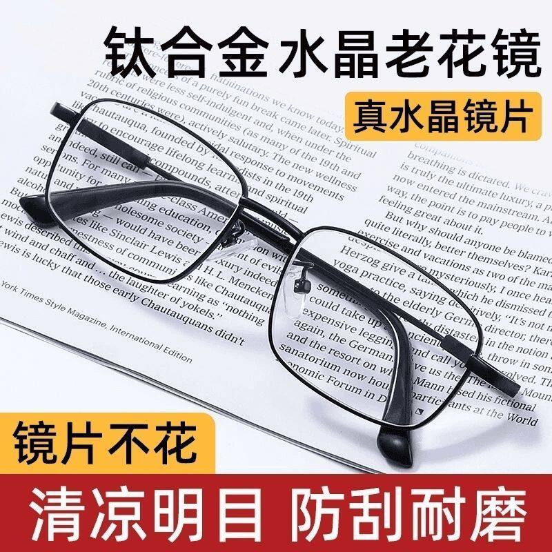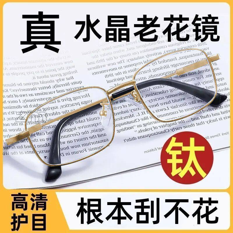 纯钛水晶石老花镜男女高档中老年高清眼镜东海老人眼镜框防蓝光