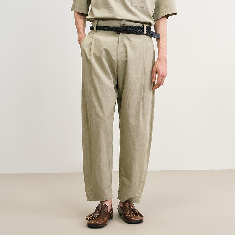 LR MADE 25SS 侧缝打褶 小弯刀垂感 碳磨洗水纯棉休闲廓形长裤