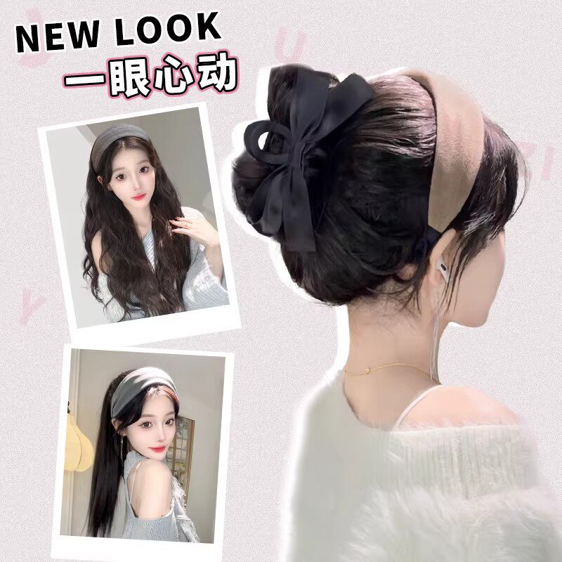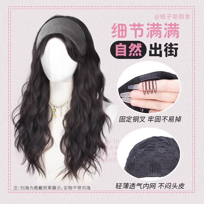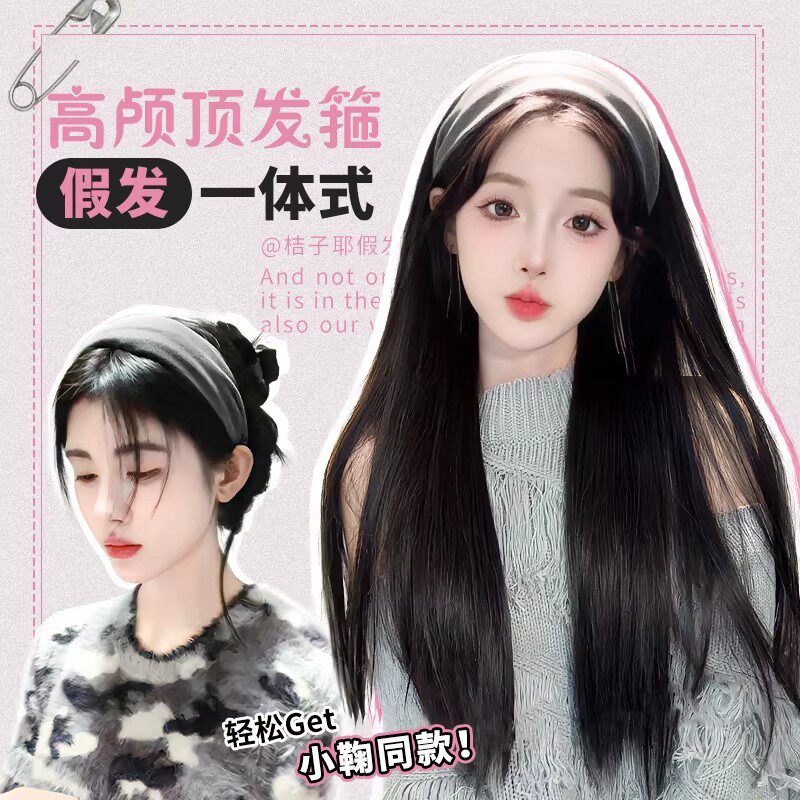 发箍假发一体女2026新款日常全头套式高颅顶时尚帽子长卷发套长直