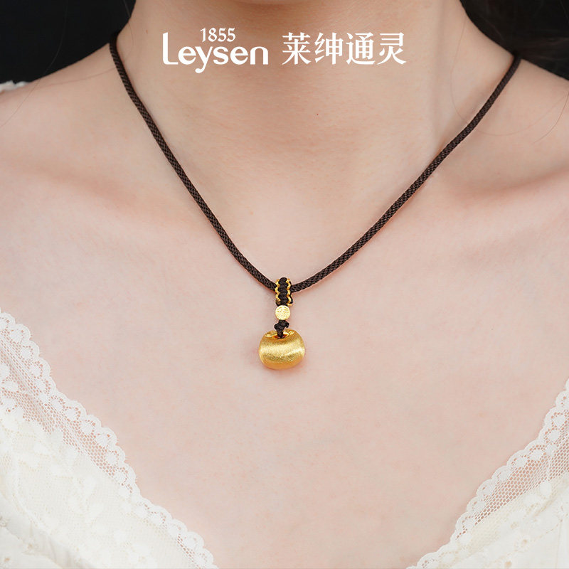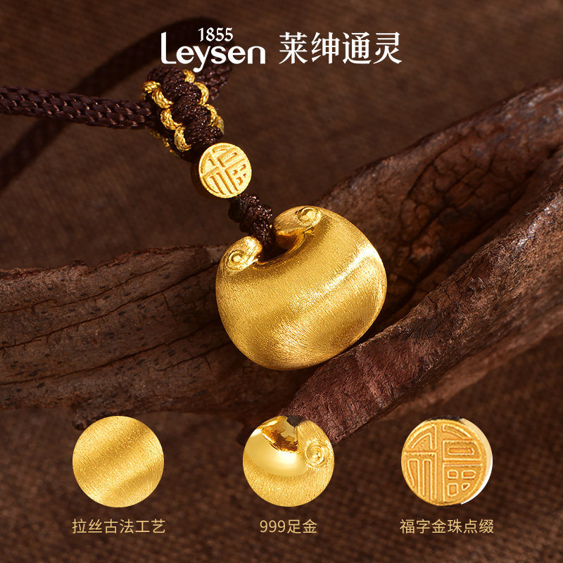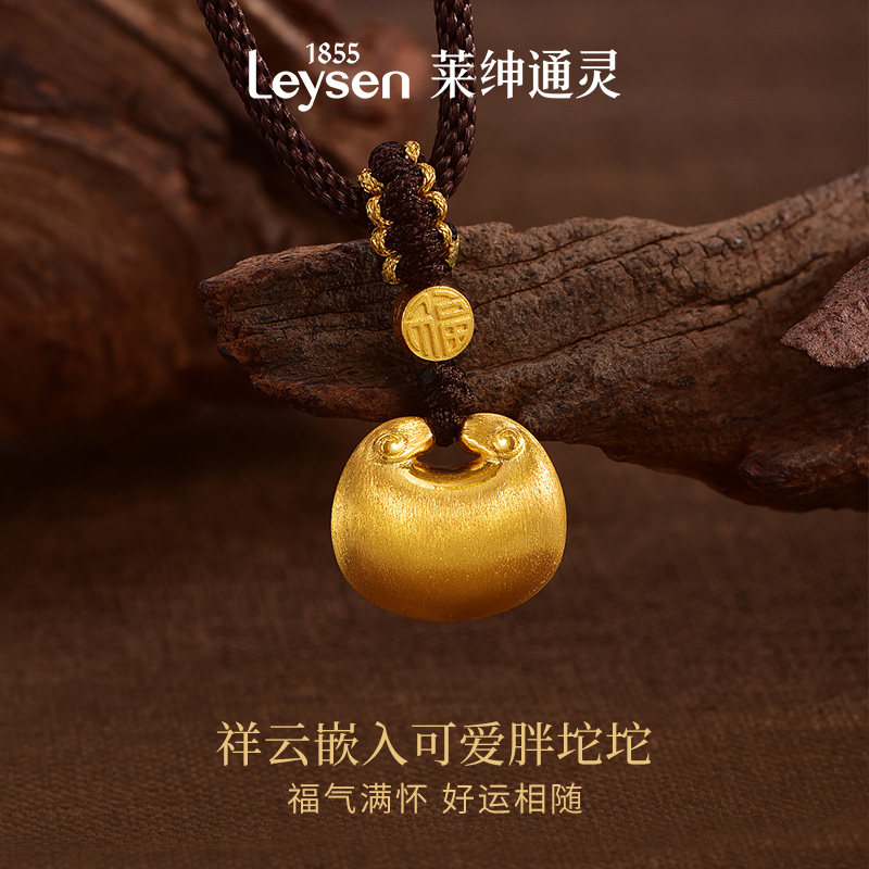 【计价金】莱绅通灵 鎏金系列 如意胖福古法黄金足金999吊坠黑绳