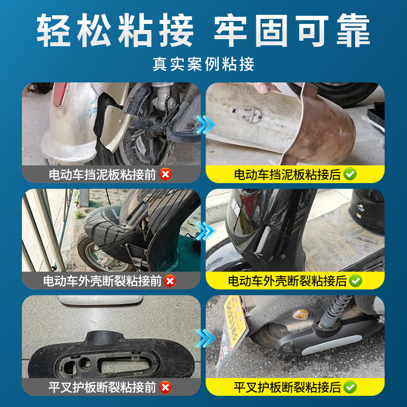 电动车外壳修补胶粘电瓶摩托车汽车保险杠粘硬塑料挡风板断裂粘合强力胶修复神器防水密封胶快干无痕透明胶水