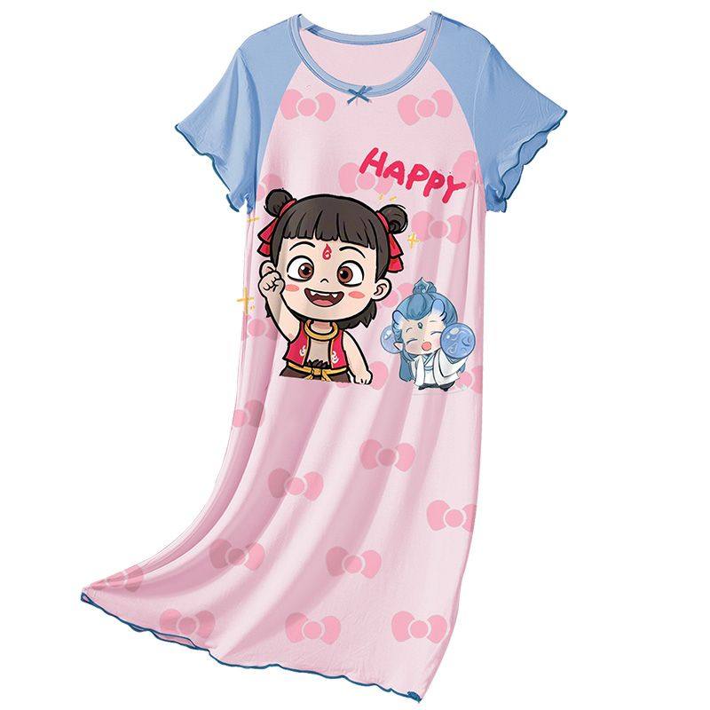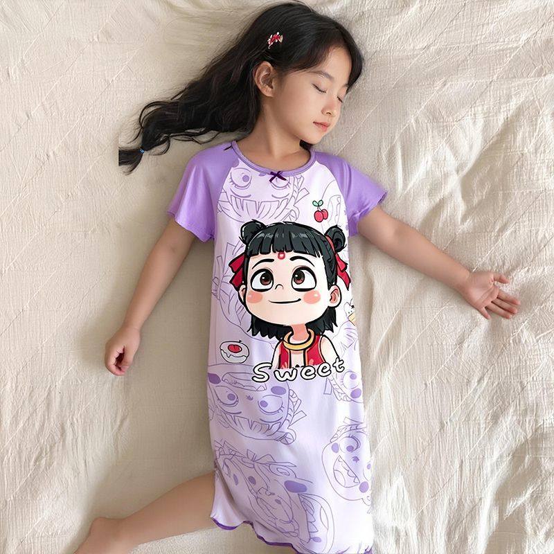 2025冰丝莫代尔女孩女童夏季睡裙卡通新款中大童睡衣裙亲子家居服