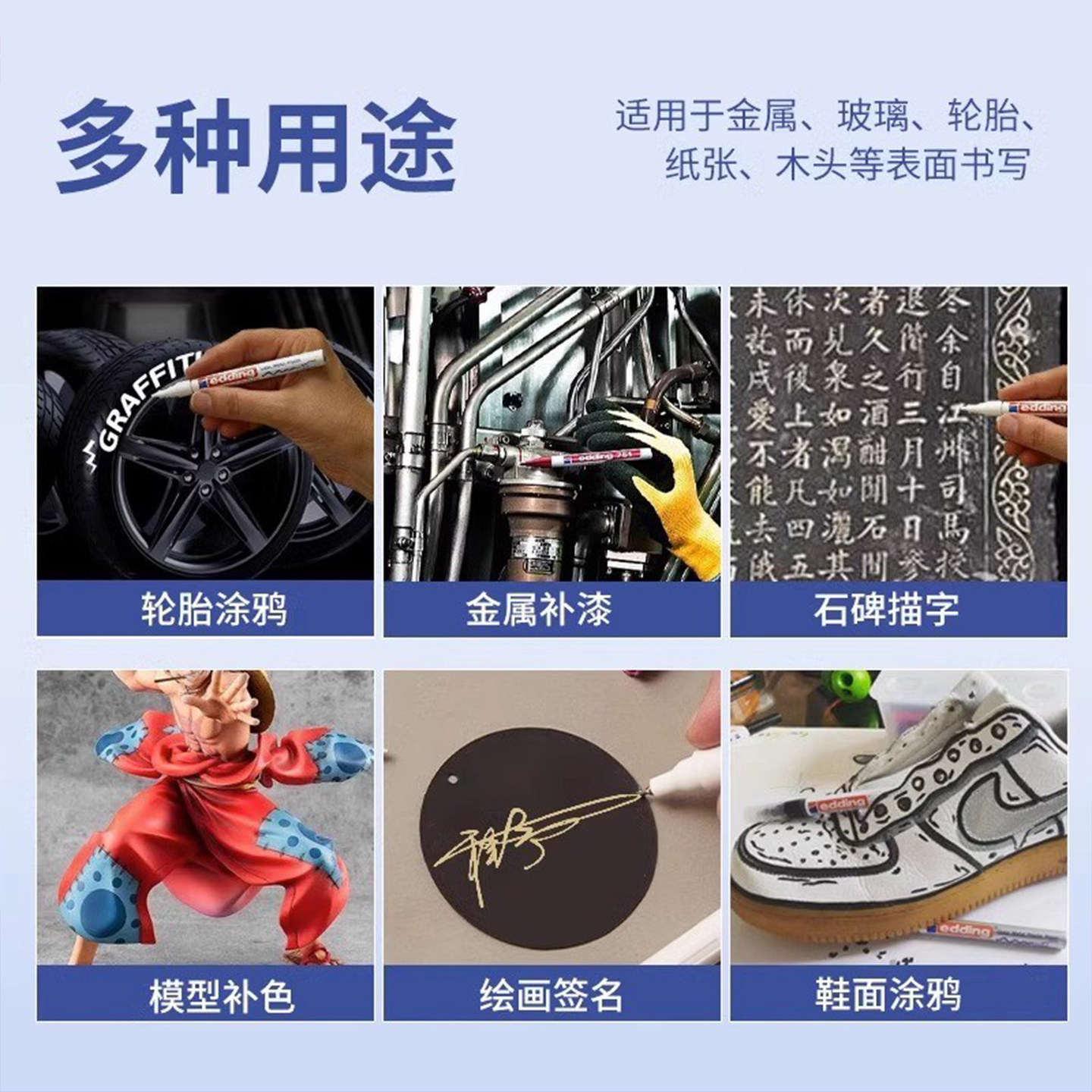 edding751油漆笔防酒精耐工业不掉色织物玻璃补漆速干涂鸦马克笔