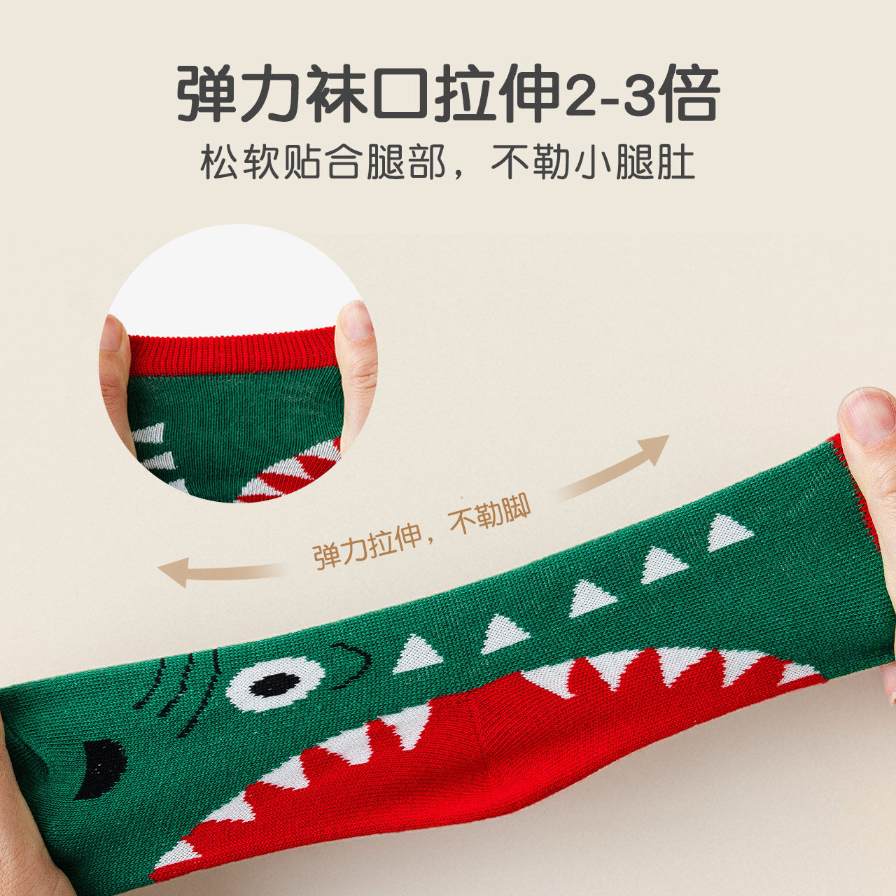 caramella儿童袜子男童纯棉卡通小恐龙宝宝秋冬舒适中筒中大童袜