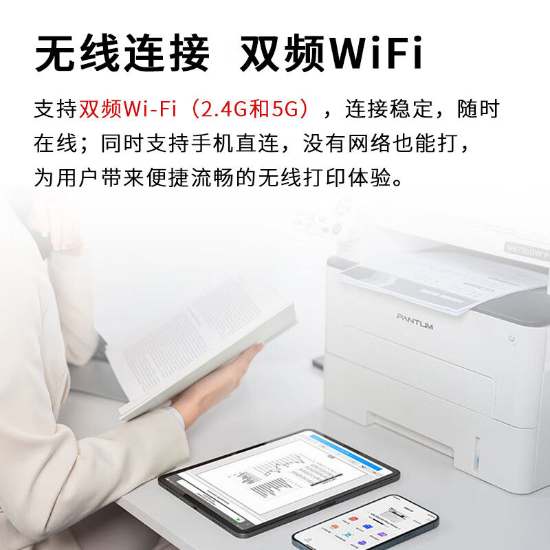 【新品推荐】奔图M6700DW Plus家用办公激光打印机A4自动双面无线微信远程黑白复印扫描一体机5Gwifi政府补贴