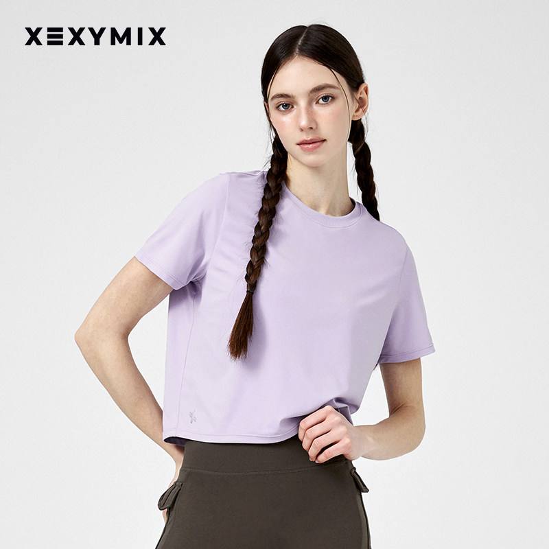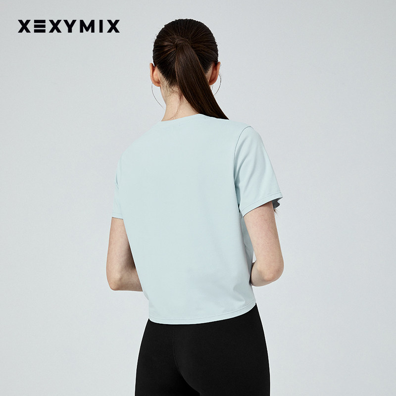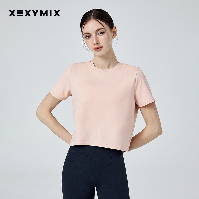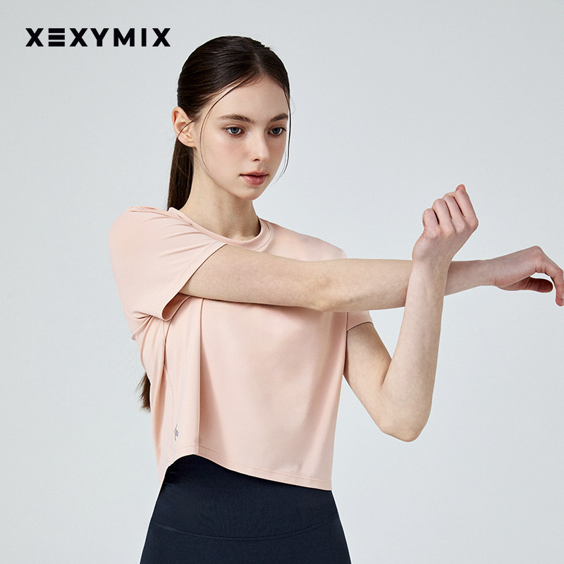 xexymix杰克茜女下摆X标宽松素色短袖T恤瑜伽健身舞蹈 XFK1TS1002