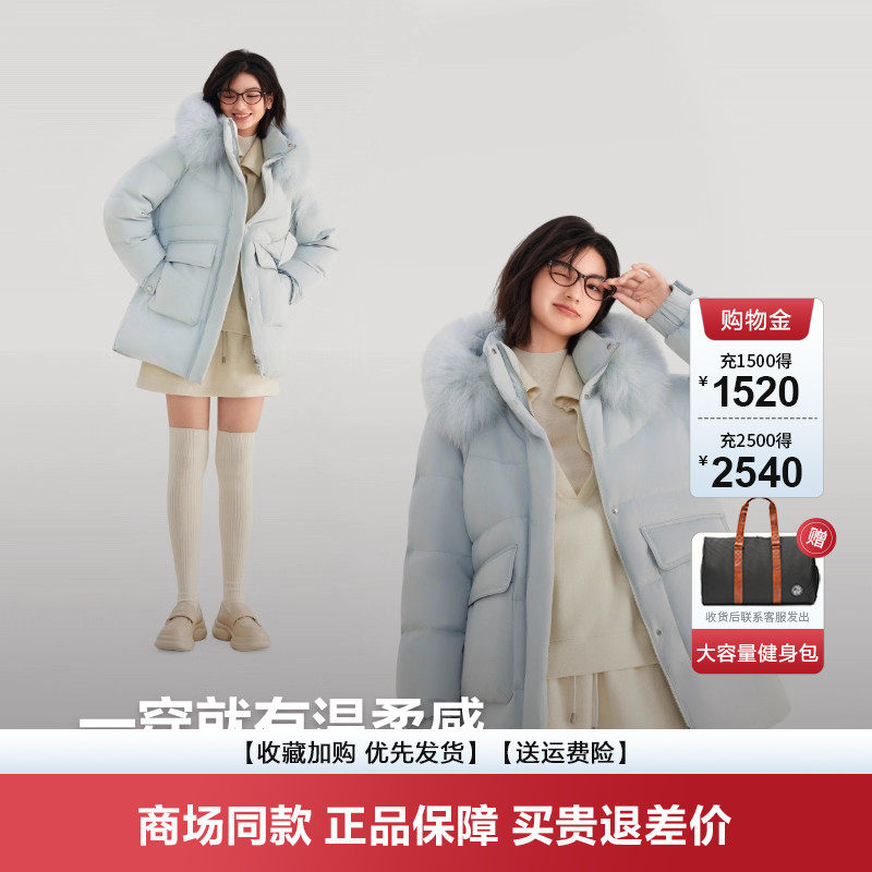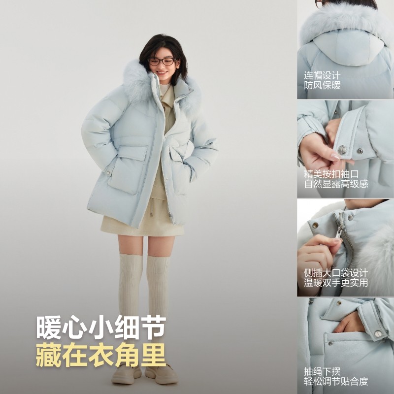 【李佳琦直播间】雪中飞2025鹅绒男女貉子毛领复古工装派克羽绒服