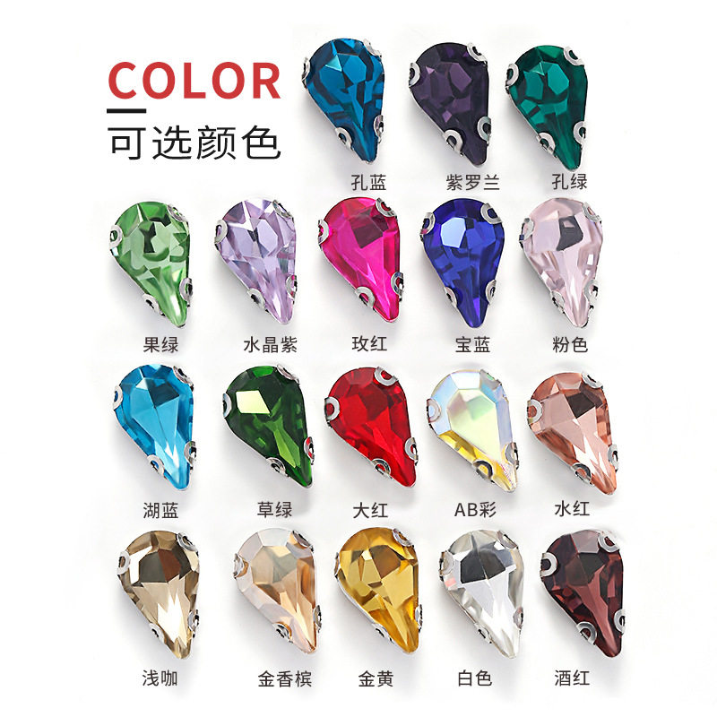 玻璃8*13MM水滴爪钻D形防钩白K手缝钻DIY婚纱鞋饰配件水钻鞋子