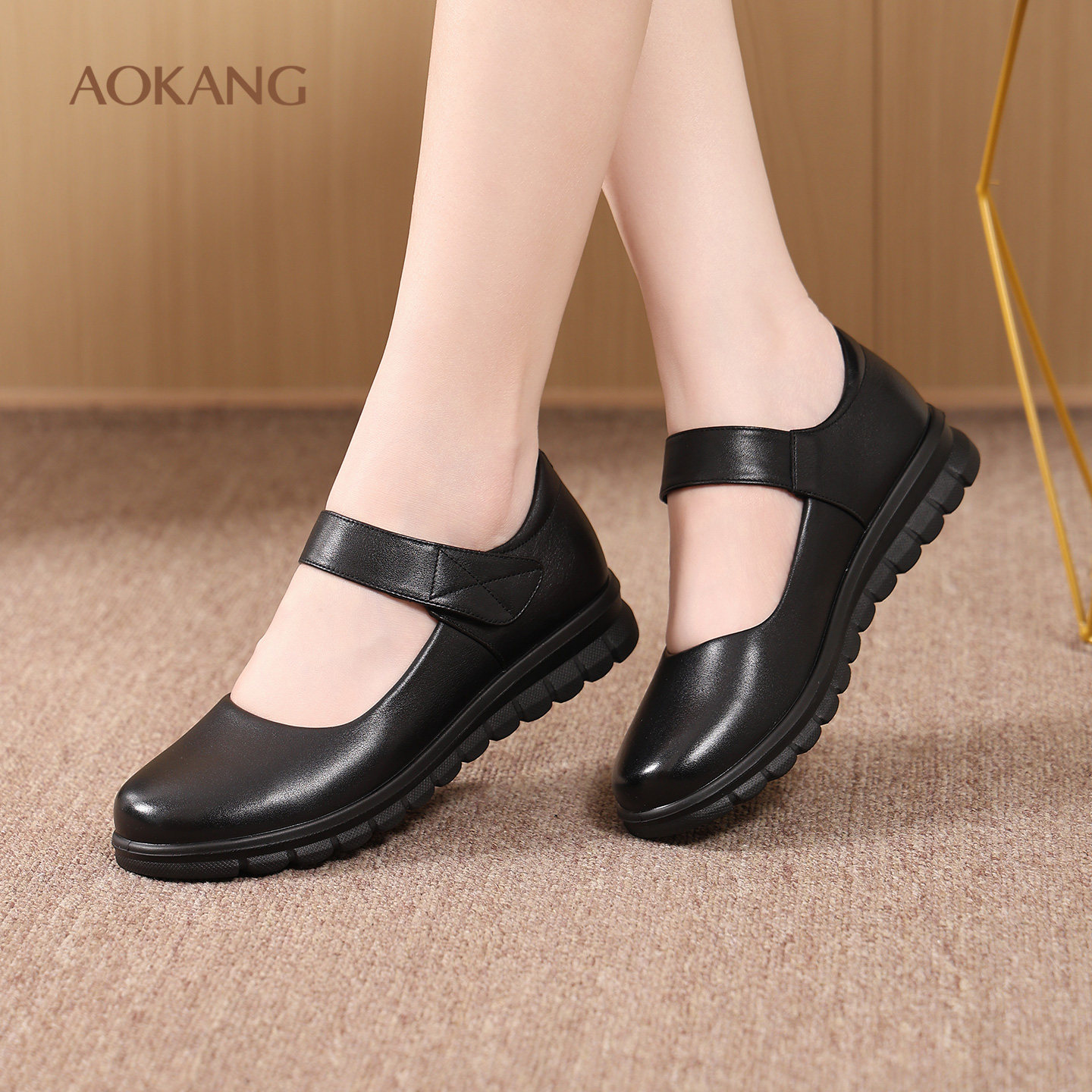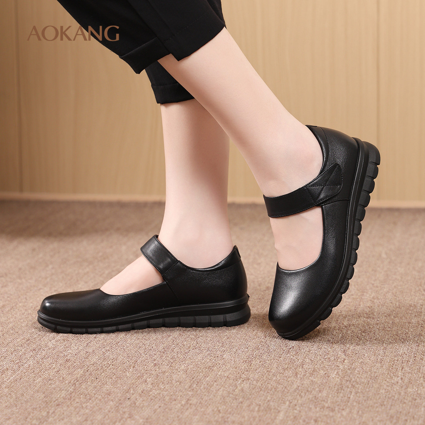 奥康 女鞋2025秋季新款平底单鞋女真皮浅口女单鞋软底软皮妈妈鞋L