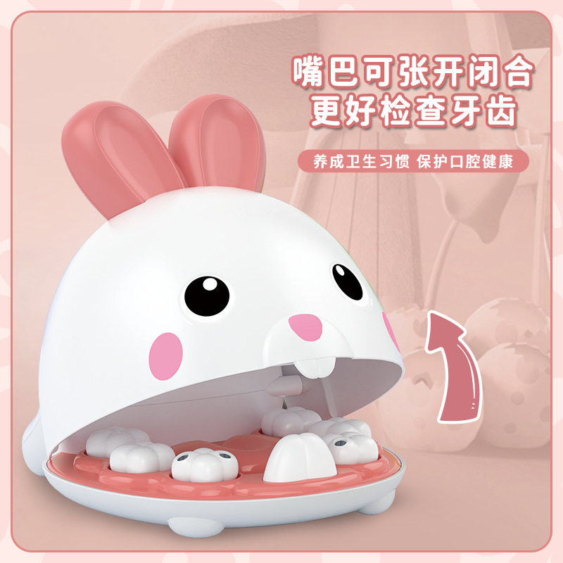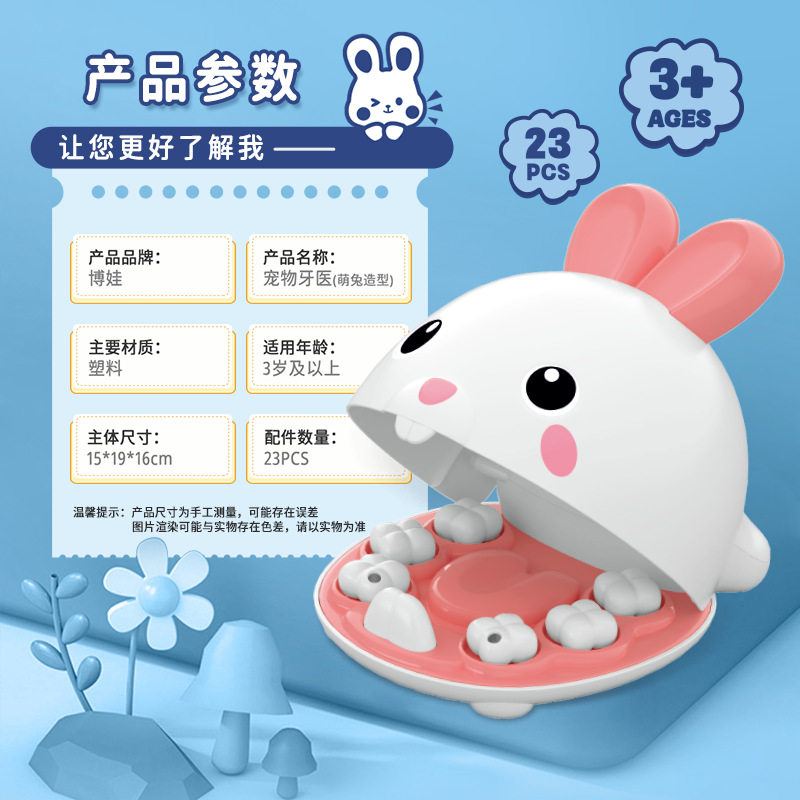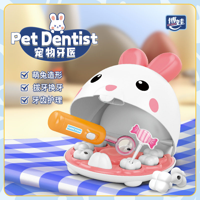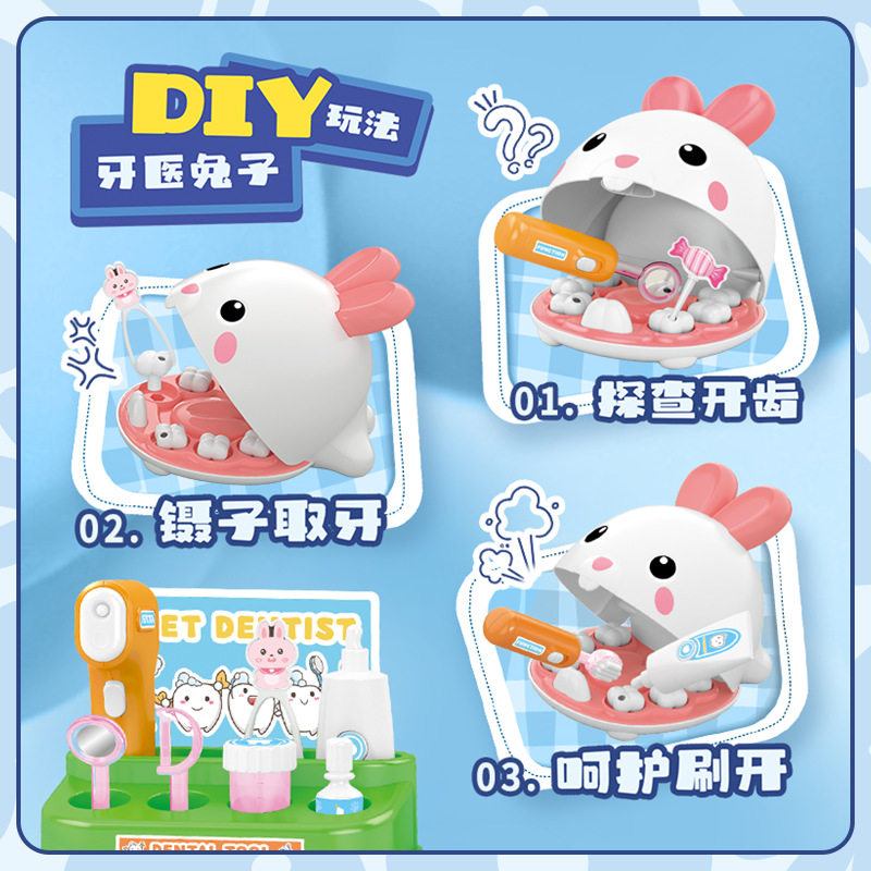 跨境宠物牙医过家家玩具 儿童仿真场景模拟萌兔造型护理拔牙医具