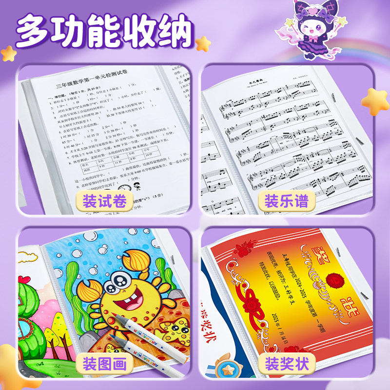 A4文件夹资料册试卷收纳袋奖状收集册透明插页活页小学生专用多层产检乐谱夹学生装卷子学习装订加厚整理神器
