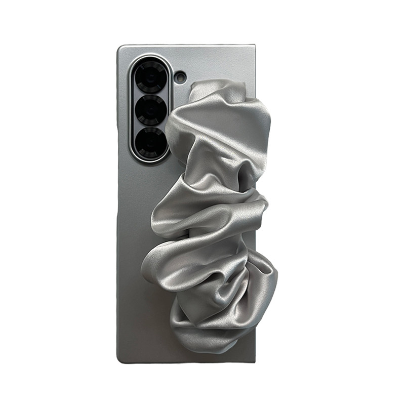 ins简约高级银丝巾手腕带适用于三星zfold7/6/5手机壳全包新款折叠屏韩国GalaxyW26/25/24限量翻盖防摔保护套