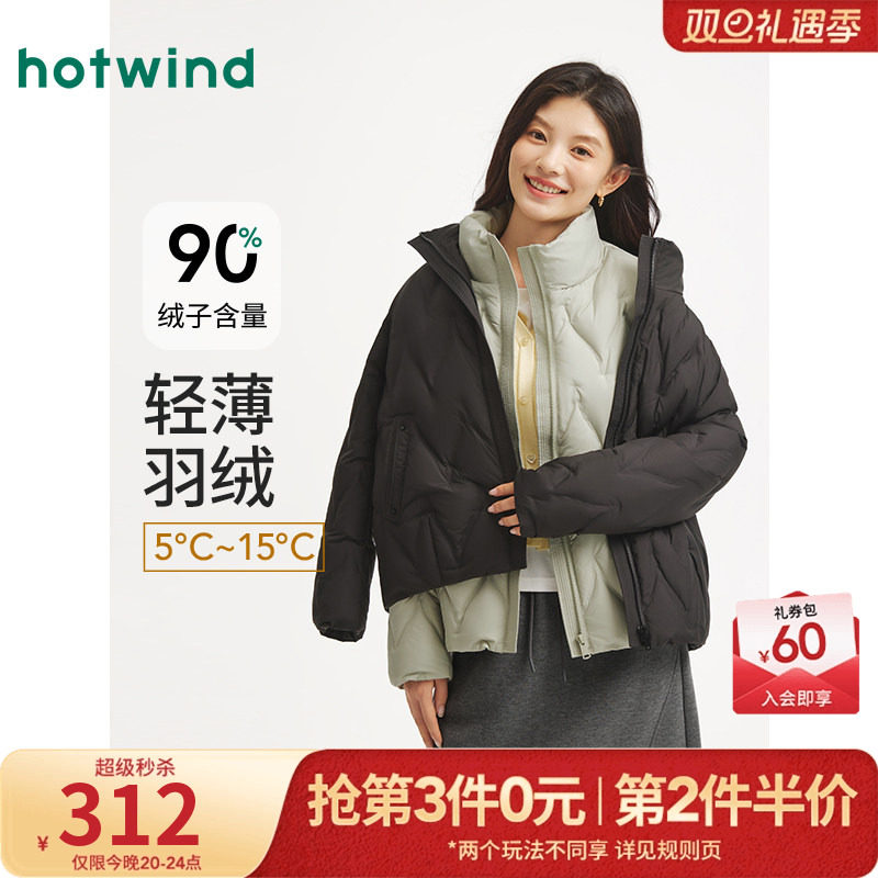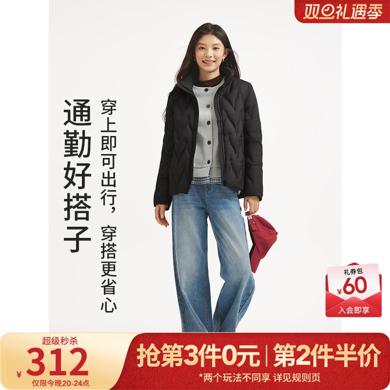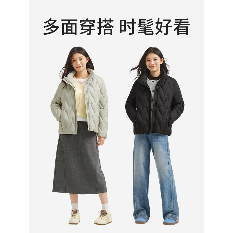 热风2025年冬季新款女士立领轻薄鸭绒羽绒服纯色耐脏好打理