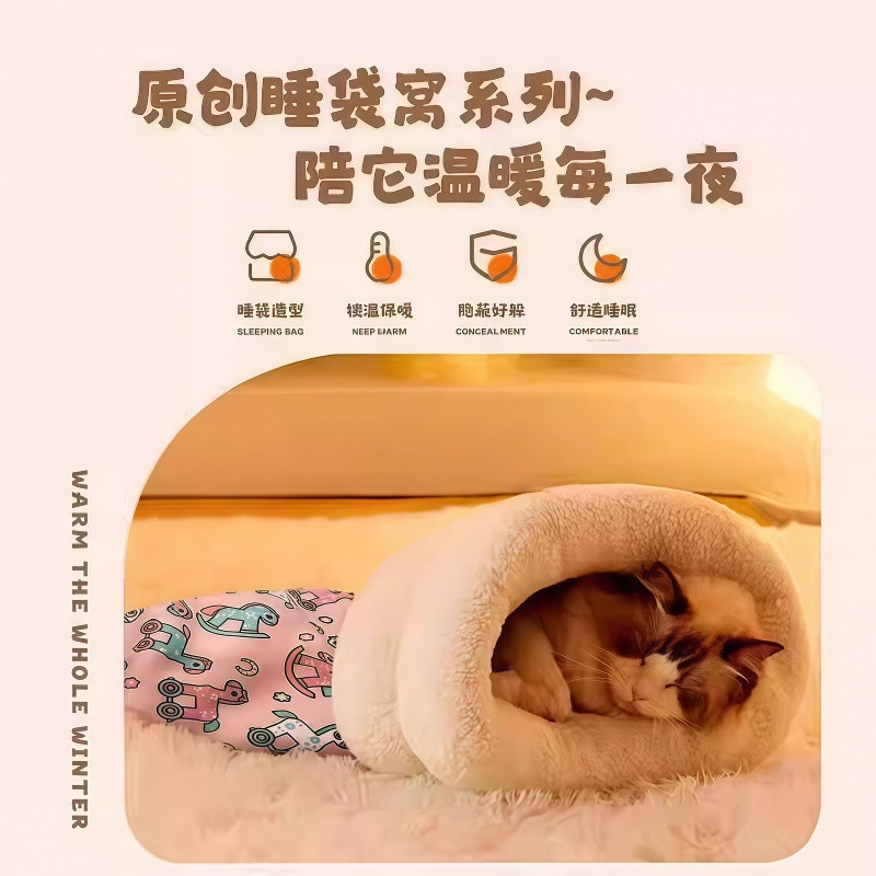 封闭式睡袋猫窝春秋保暖隧道安全感躲避钻洞可拆洗小猫睡觉用品