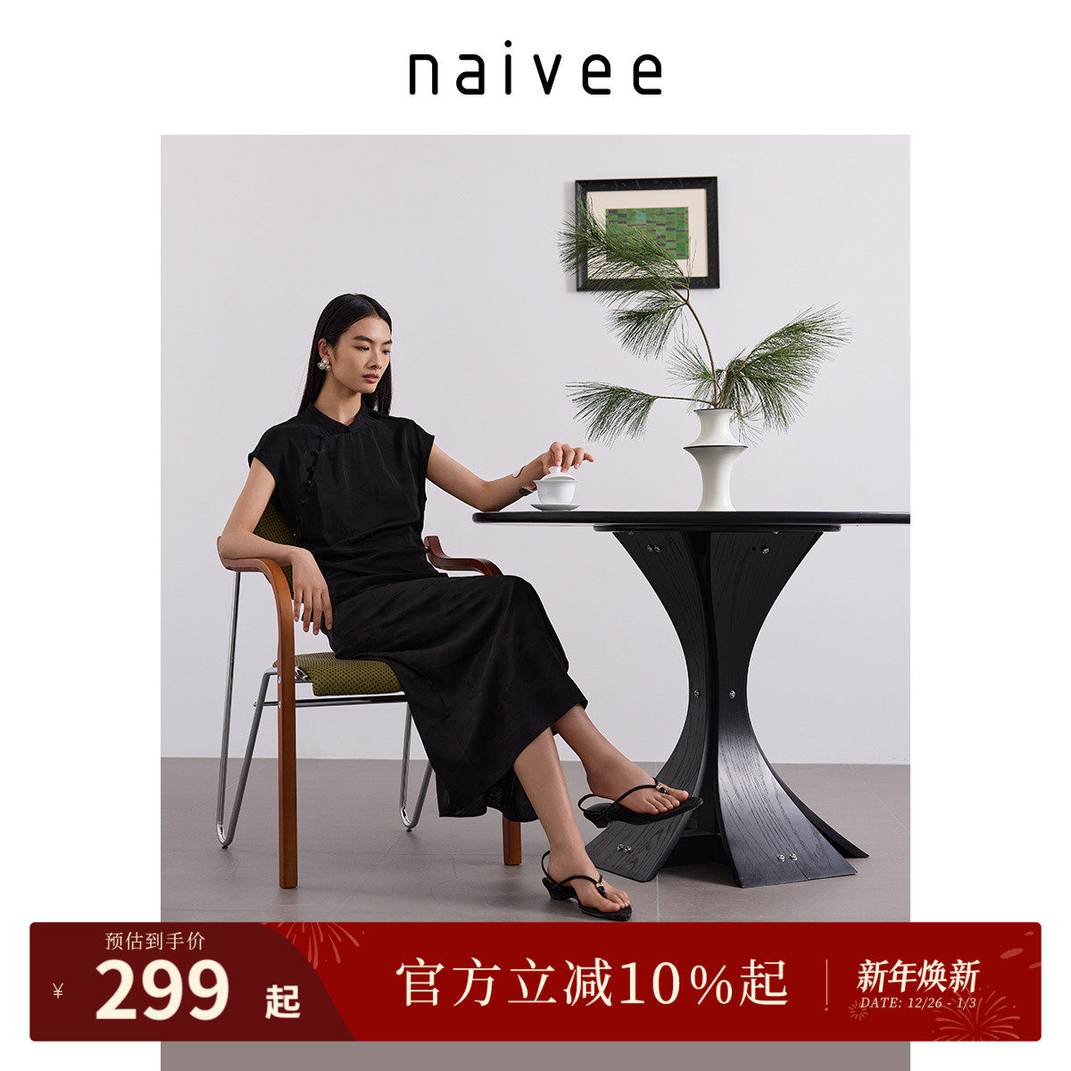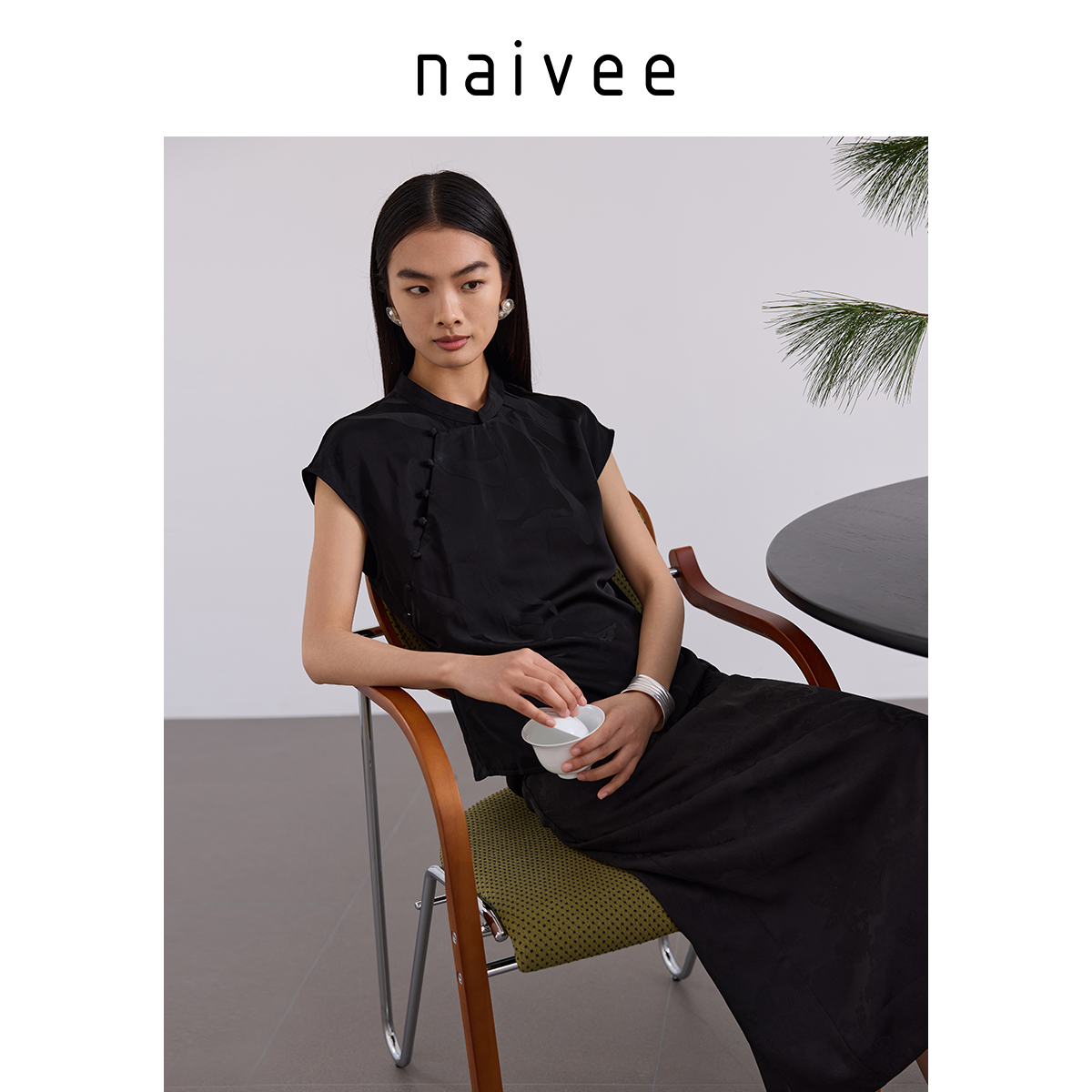 缎面提花』naivee纳薇新中式无袖上衣女25夏新款赴宴V领捏褶收腰