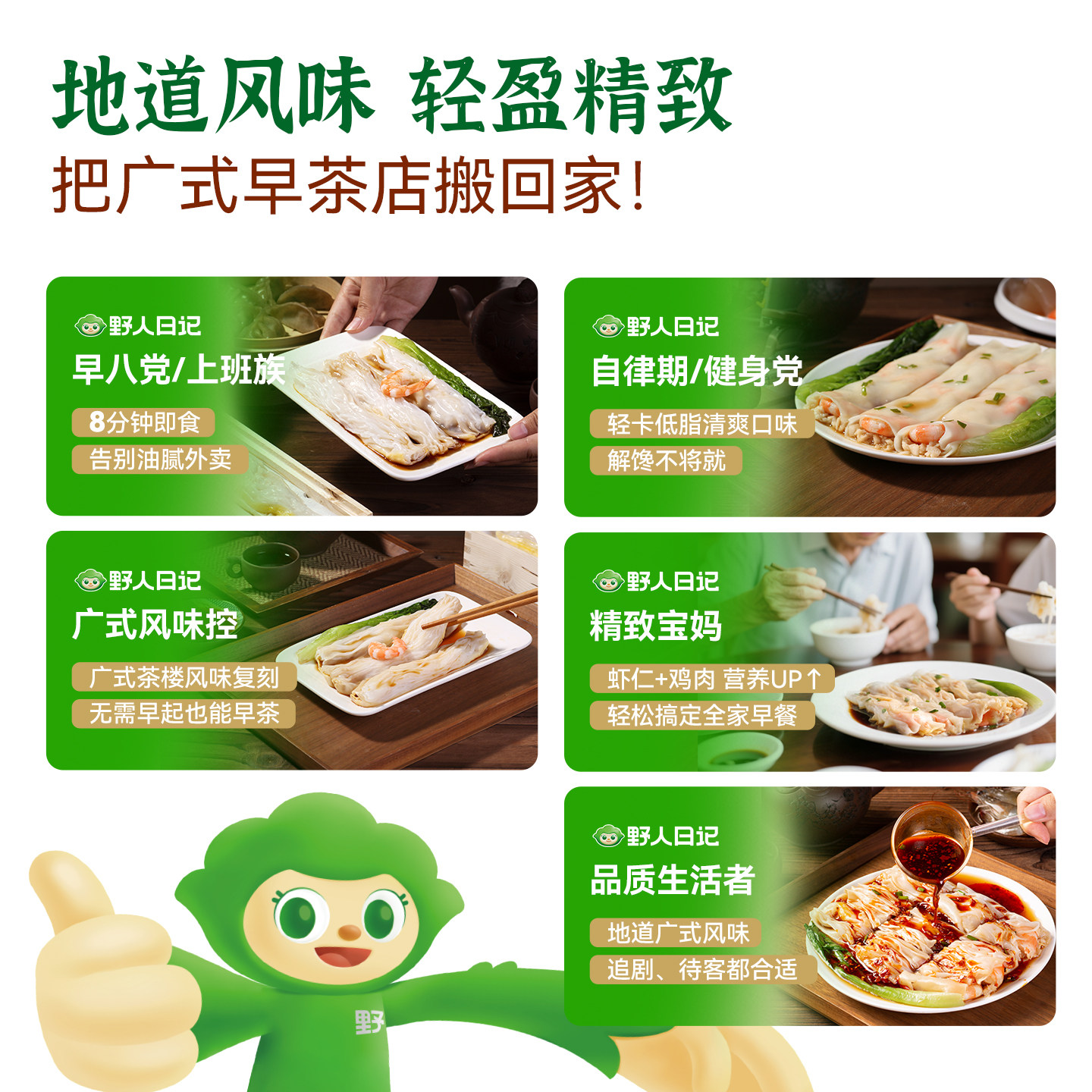 野人日记九虾魔芋肠粉皇半成品加热即食低脂早餐广式早茶点速食