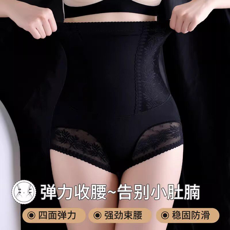 新款蕾丝高腰内裤女强力收小肚子无痕束腰提臀美体平角收腹塑身裤
