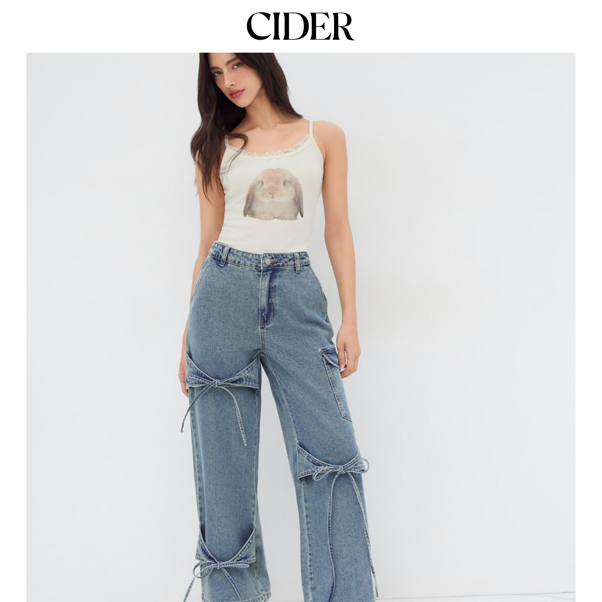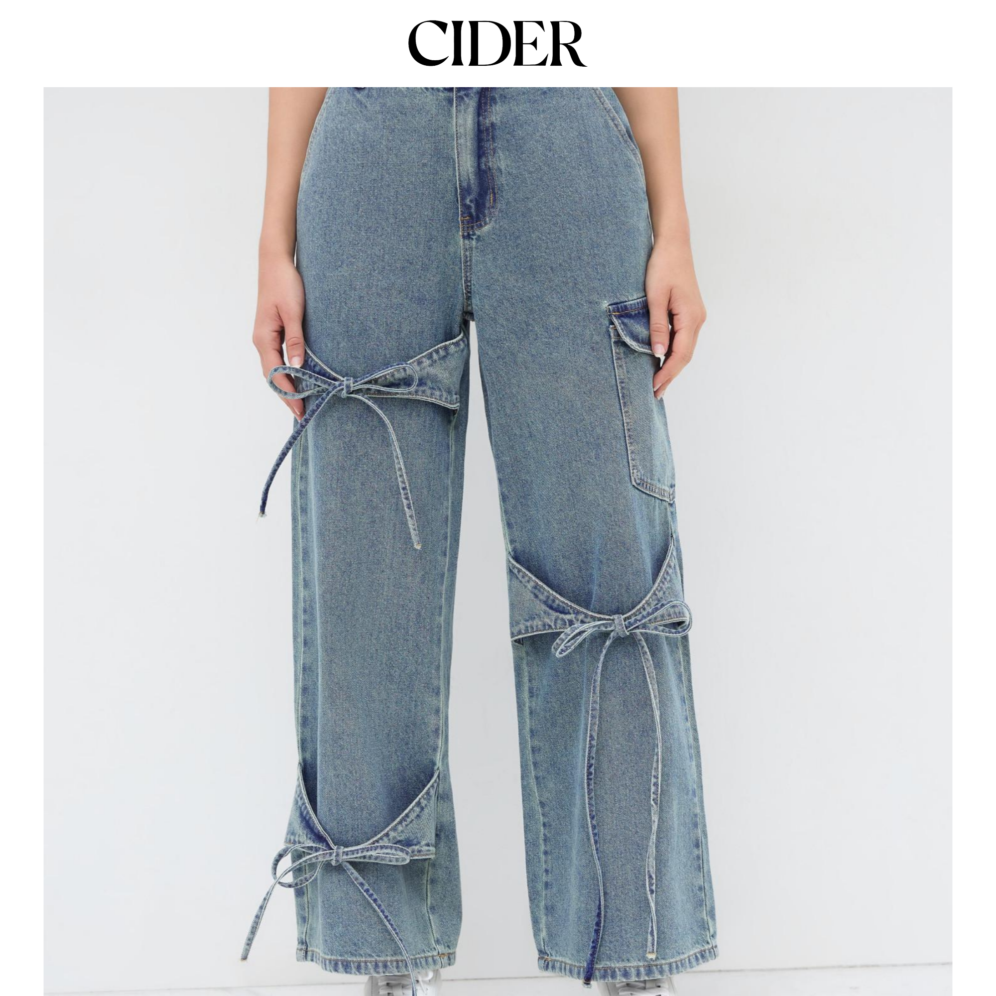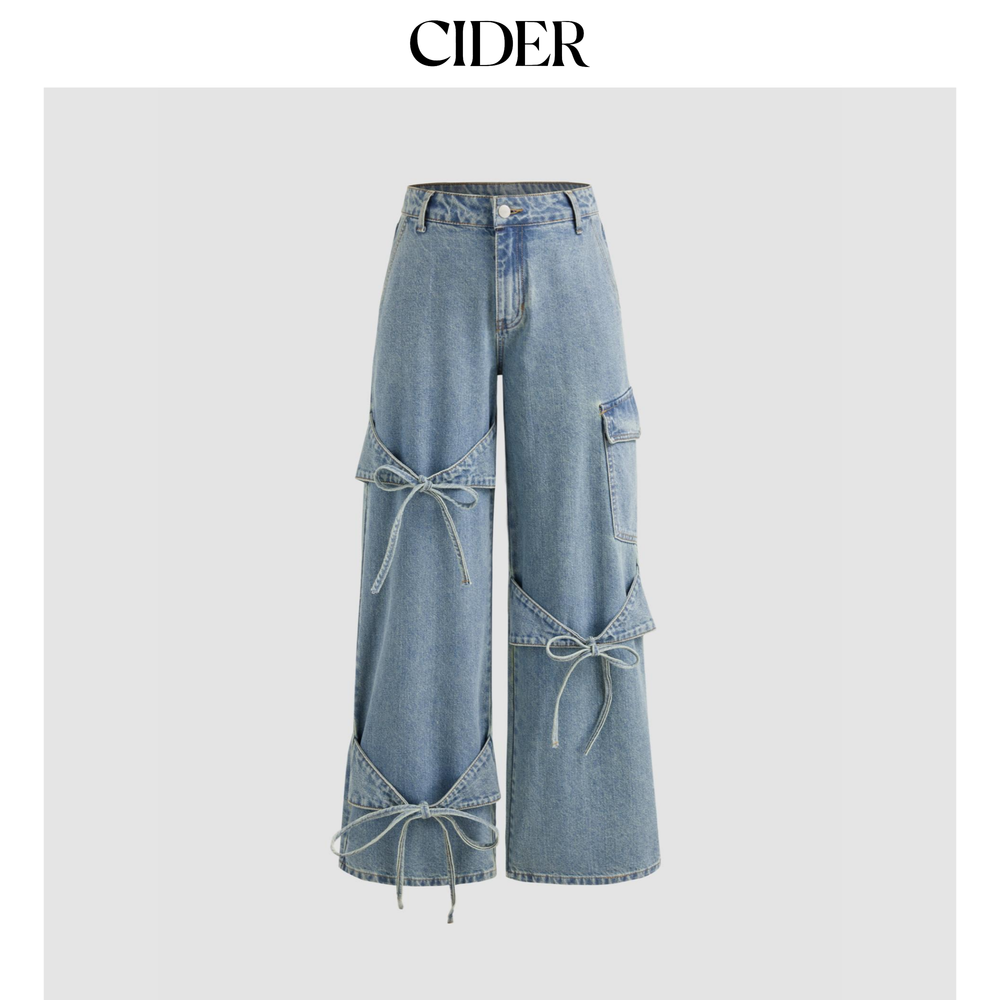 【明星同款】CIDER 蝴蝶结显瘦阔腿中低腰牛仔裤女装110376211