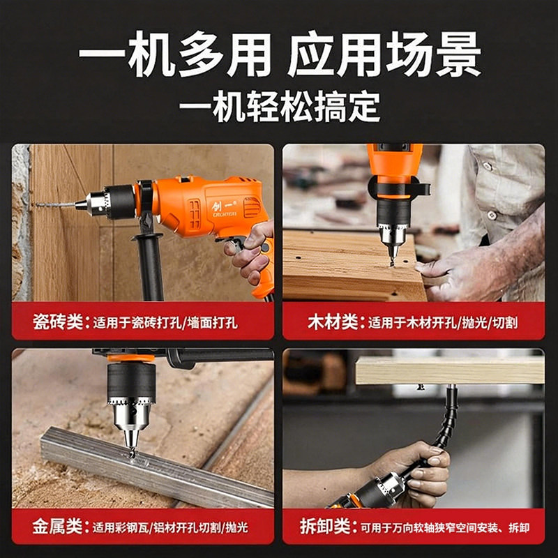 创一冲击钻家用多功能220v钻孔机小手枪钻电动螺丝刀电起子工具