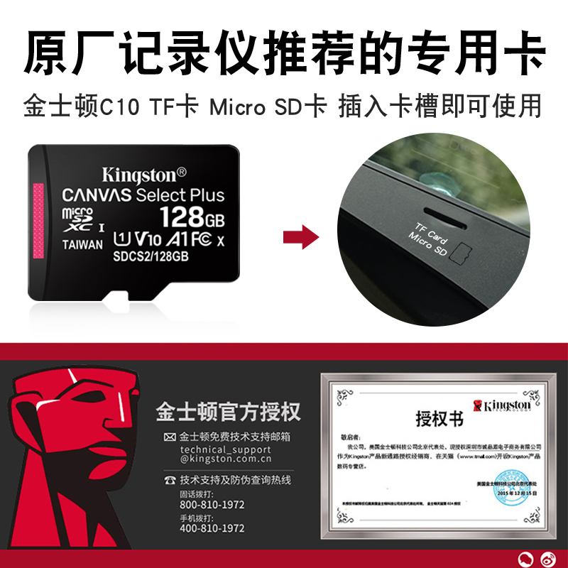 金士顿凌度小米萤石监控摄像头128高速内存行车记录仪tf存储卡64g