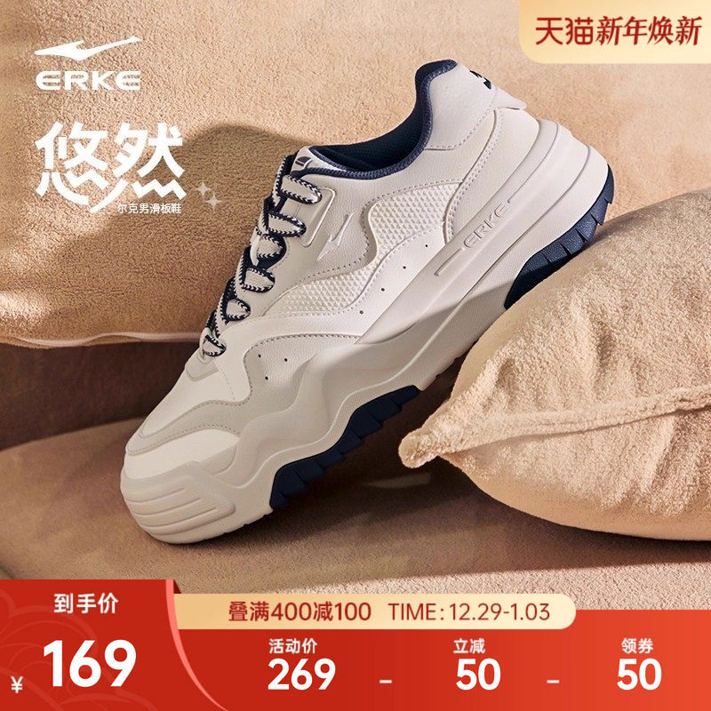 悠然鸿星尔克板鞋男鞋冬季新款鞋子厚底百搭运动鞋学生轻便休闲鞋