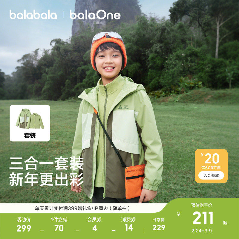 巴拉巴拉童装男童厚外套儿童上衣2026春装透湿摇粒绒两件套保暖潮