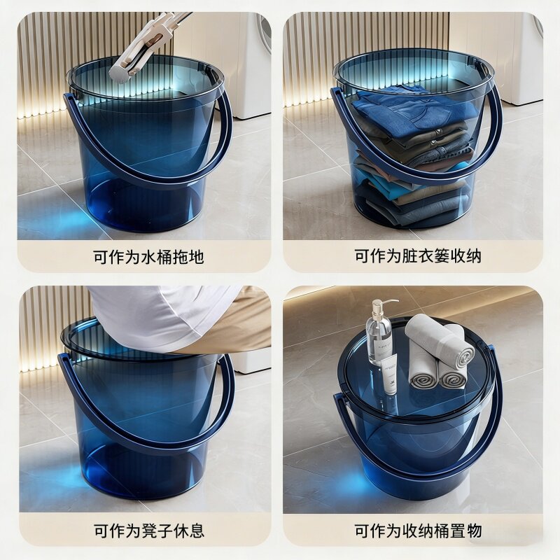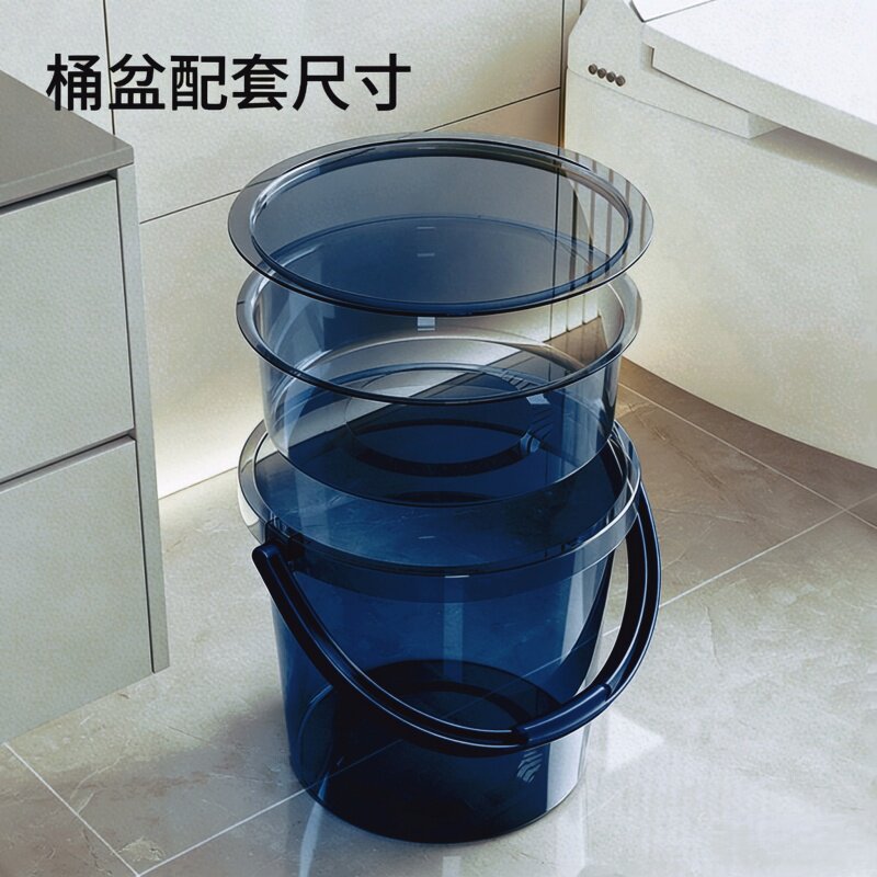 水桶家用储水用加厚塑料桶手提小水桶学生宿舍用透色带盖三件套