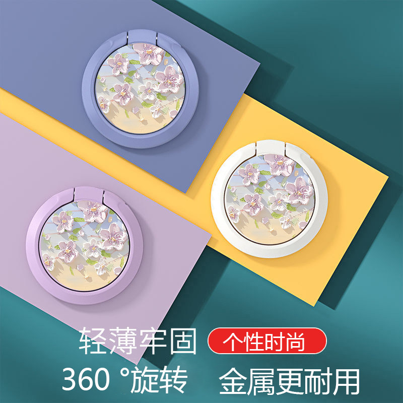 手机指环扣支架壳环指扣金属手机圈新款高级男女背贴油画白色樱花